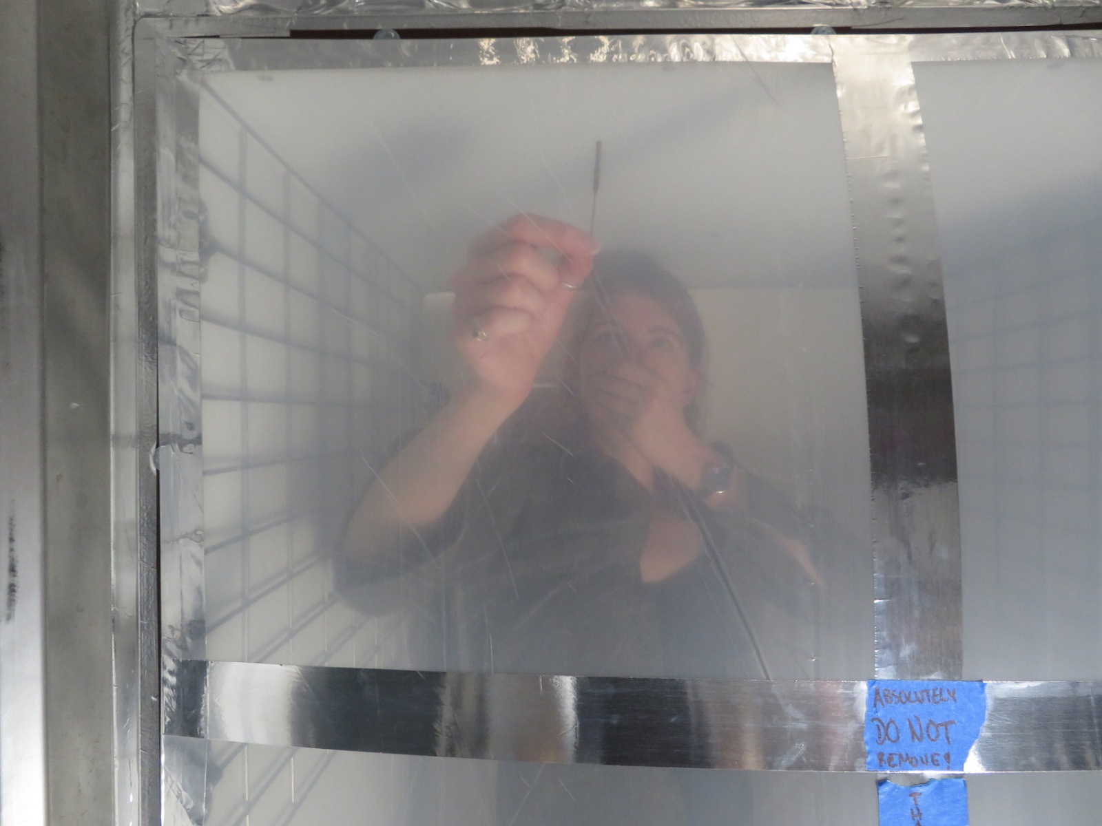 In the first part of June, Sean Gellenbeck and Matthias Beach isolated the lung from the rest of SAM, and then the lung and Test Module from the rest of SAM. In each instance they conducted a pressure test by raising the lung to roughly 36″, then closing the inlet valve and terminating the blower. The height of one of the eight lung feet was measured from the floor, and then again once each five minutes for one hour. The drop in height over time provides the total leak rate through the loss of the known column of air below the fixed diameter lung pan and membrane.