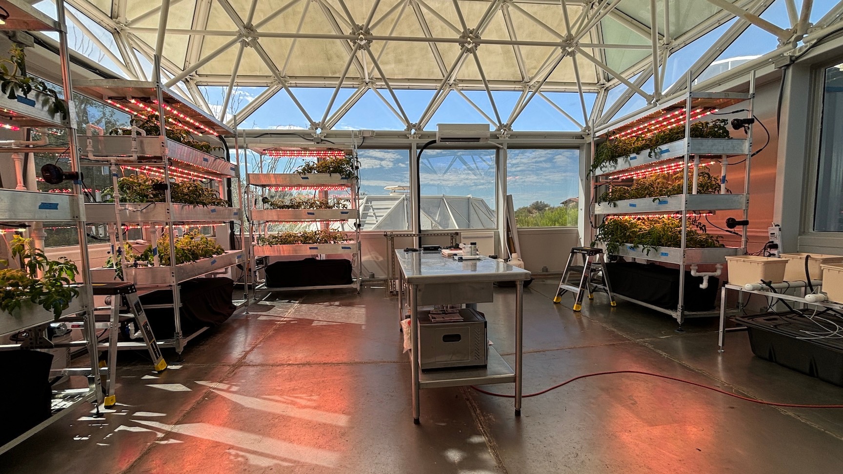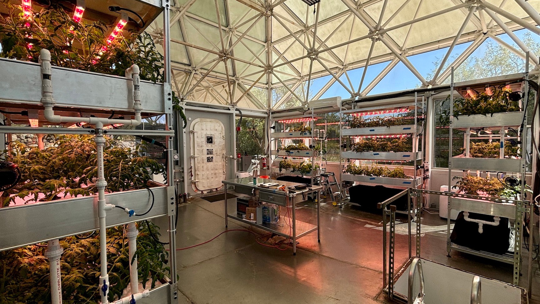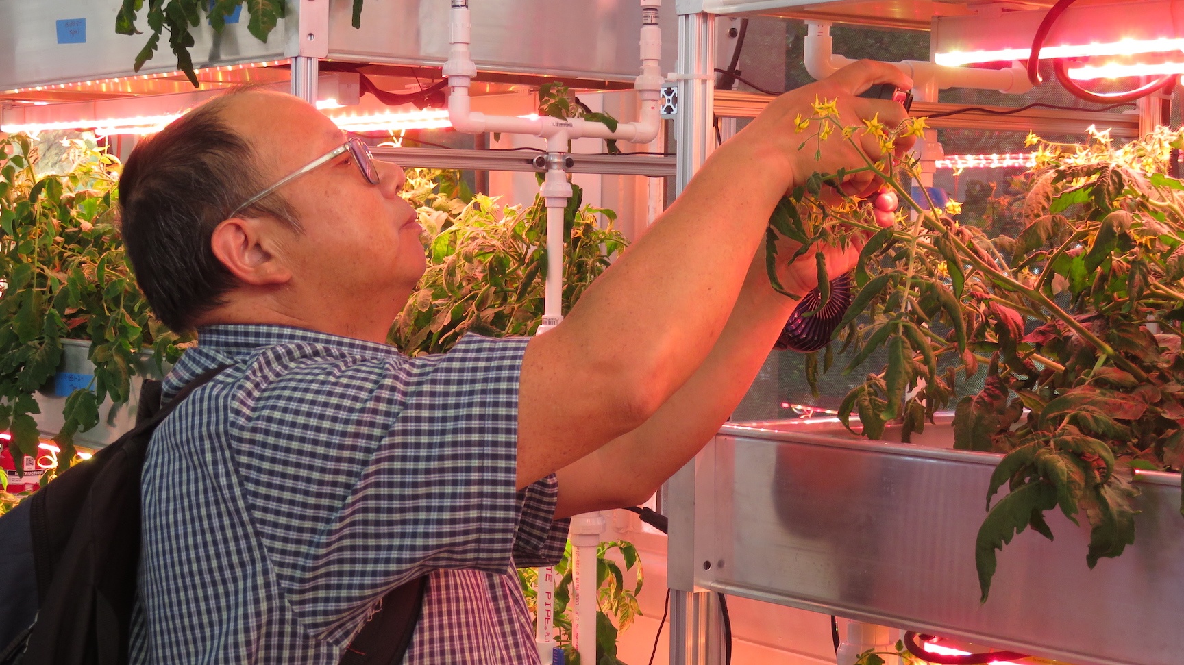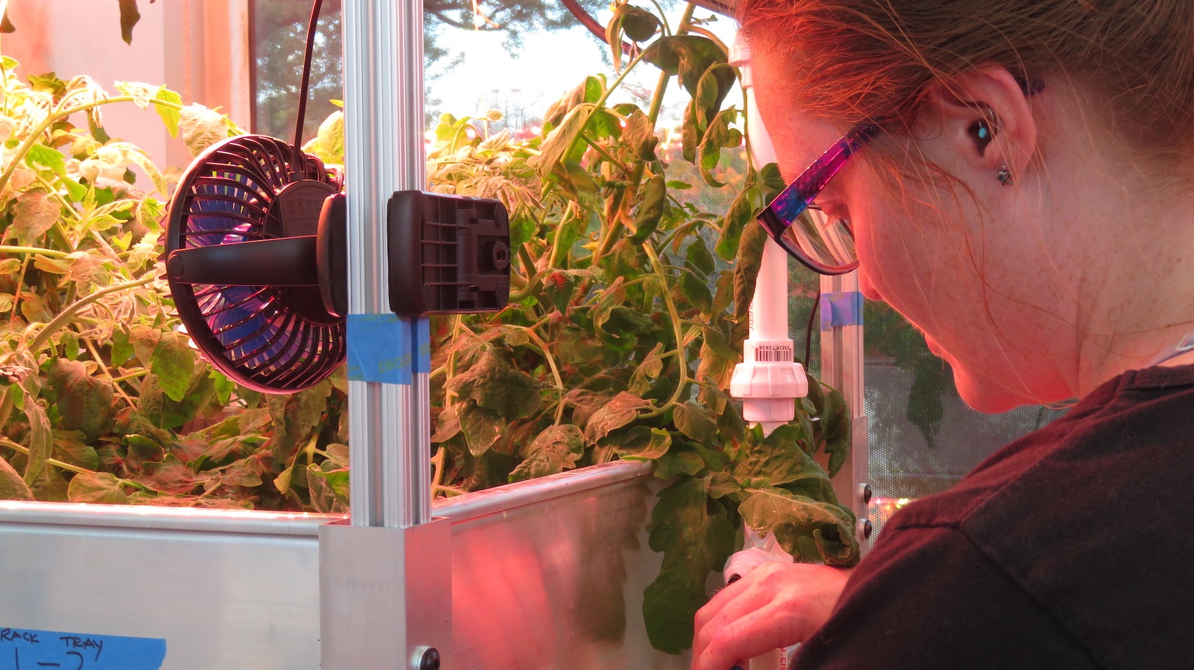 Masters student Amy Sawyer, working under Arizona State University professor Changbin Chen, has completed a one month study of four species of tomatoes, grown in the next-gen hydroponics system at SAM, a Space Analog for the Moon & Mars located at the University of Arizona Biosphere 2.