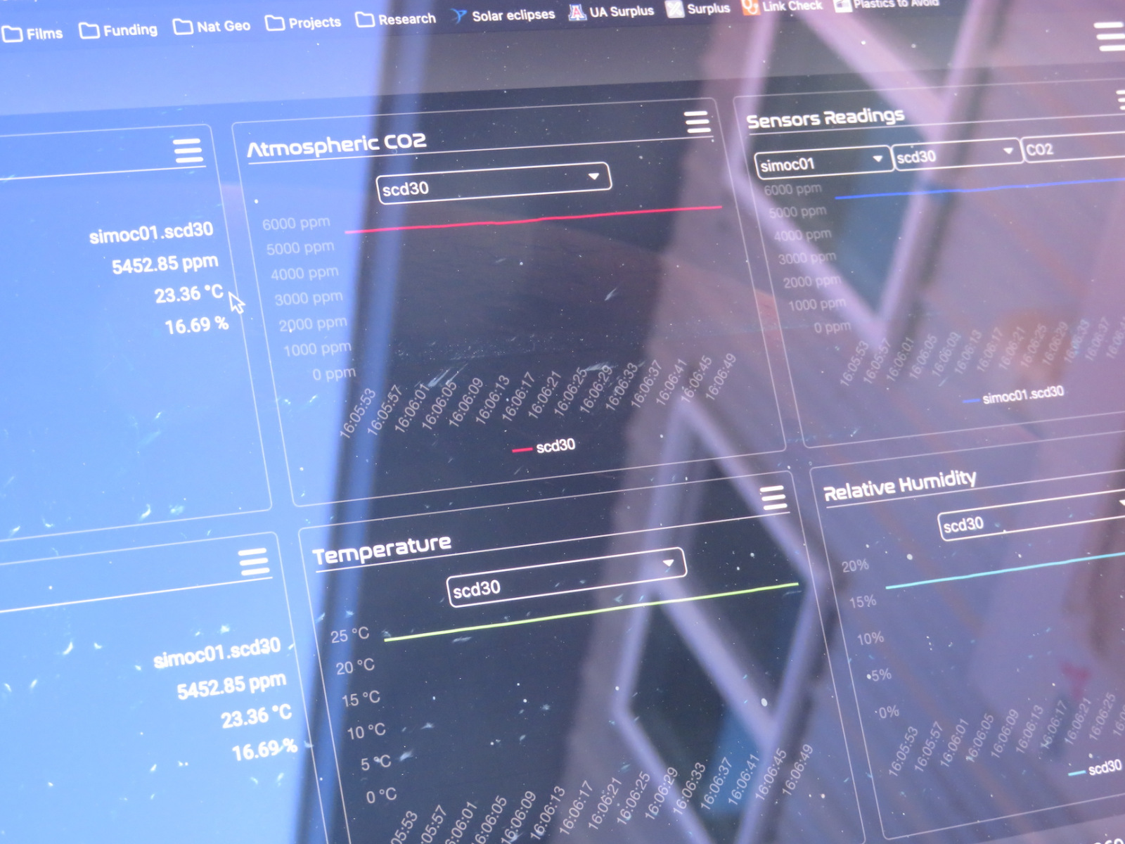 During the runs, Kai and Matthias were station in the Test Module with radio communication with Brendon for coordination, timing, and confirmation of data collection start and stop times. Kai’s laptop held a remote viewing of the data collected by SIMOC Live for CO2, relative humidity, and temperature.
