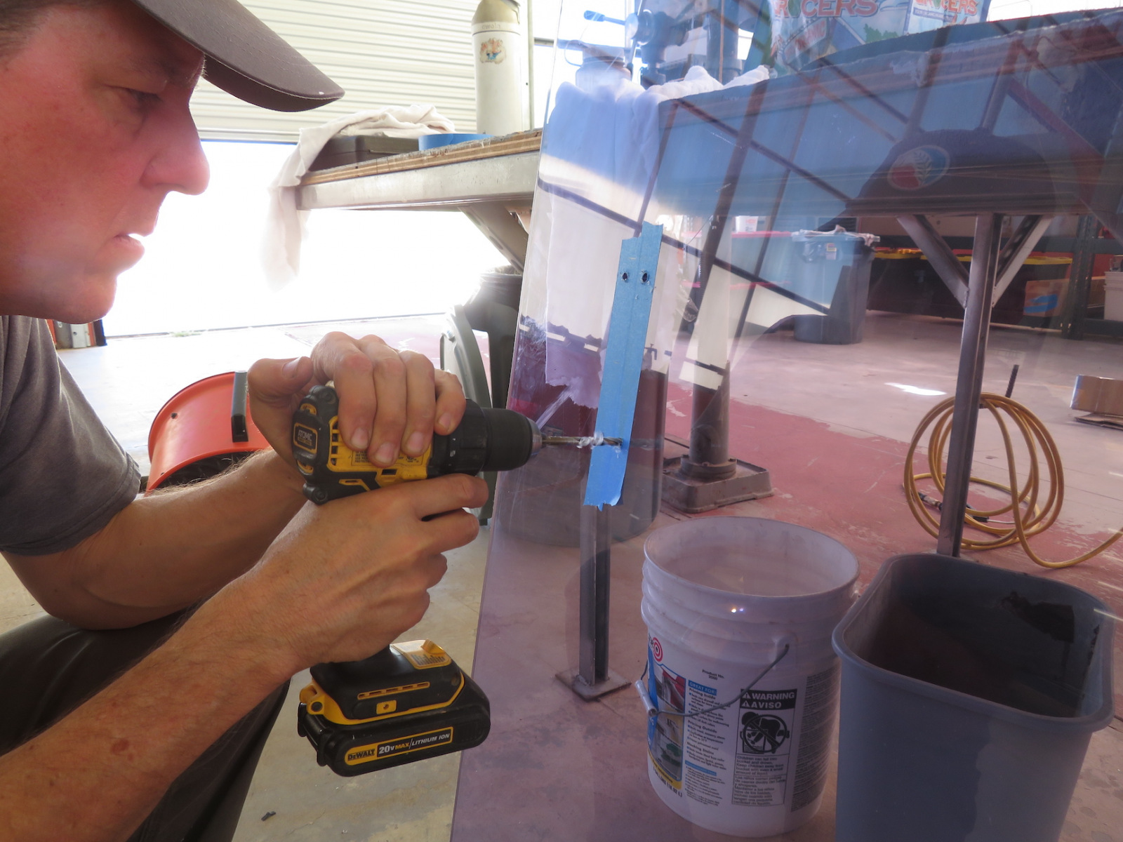 Last week Matthias removed the water line and fire detection wiring (a temporary condition) such that we he and Kai would design, fabricate, and fit a transparent PVC sheet onto the hatch frame. The water and electrical lines will be rerouted through a new bulkhead fitting that bypasses the bridge itself.