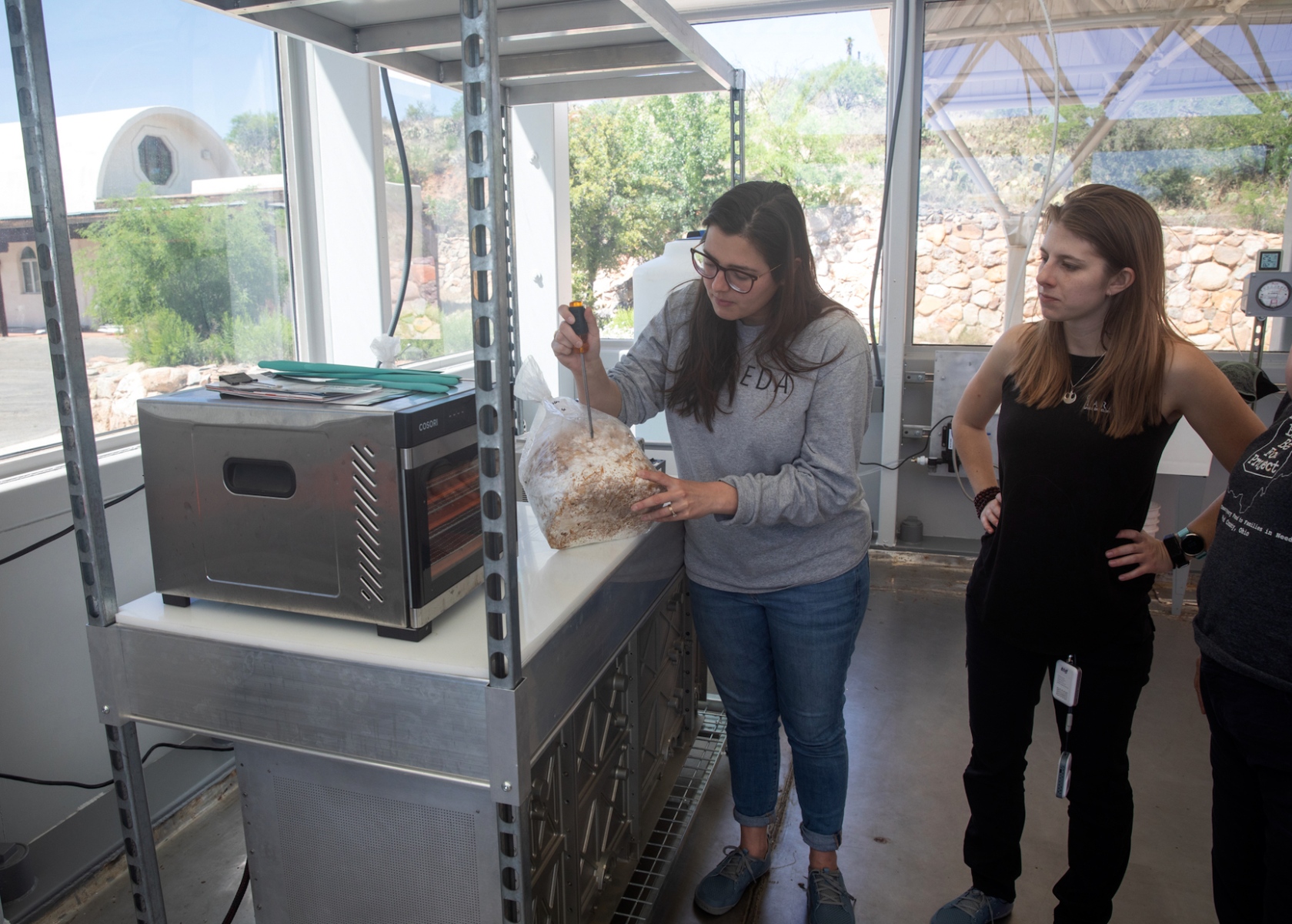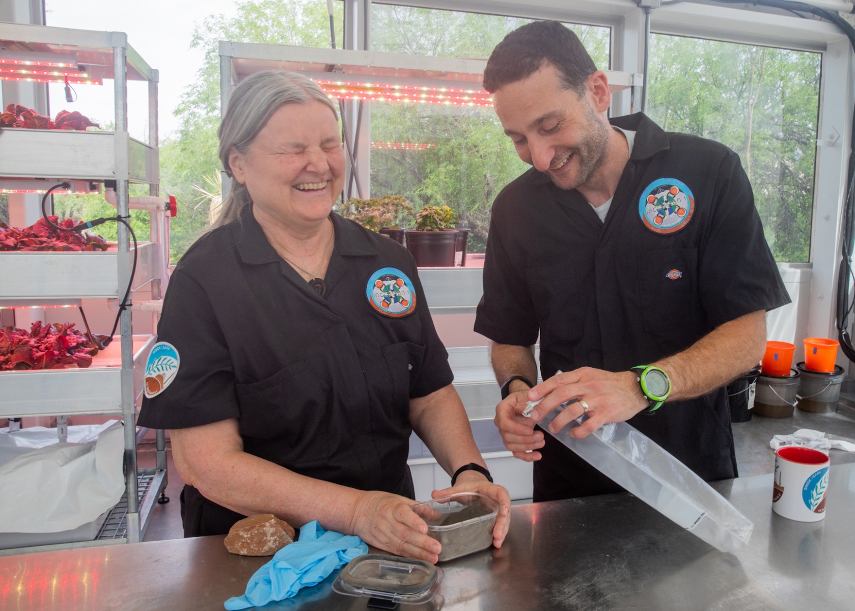 Crew Inclusion II was sent off by Biosphere 2’s Executive Director Dr. Joaquin Ruiz and original Biospherians Dr. Linda Leigh (Mission I, 1991-93) and Bernd Zabel (Mission II, 1994). Linda lived sealed inside the Test Module prototype for 21 days as part of a series of experiments to demonstrate a closed-loop bioregenerative life support system prior to building the Biosphere 2 proper. Bernd was construction manager for Biosphere 2, and continued his work at Biosphere 2 as Columbia University transitioned the facility into a climate change research center in the mid to late ’90s.