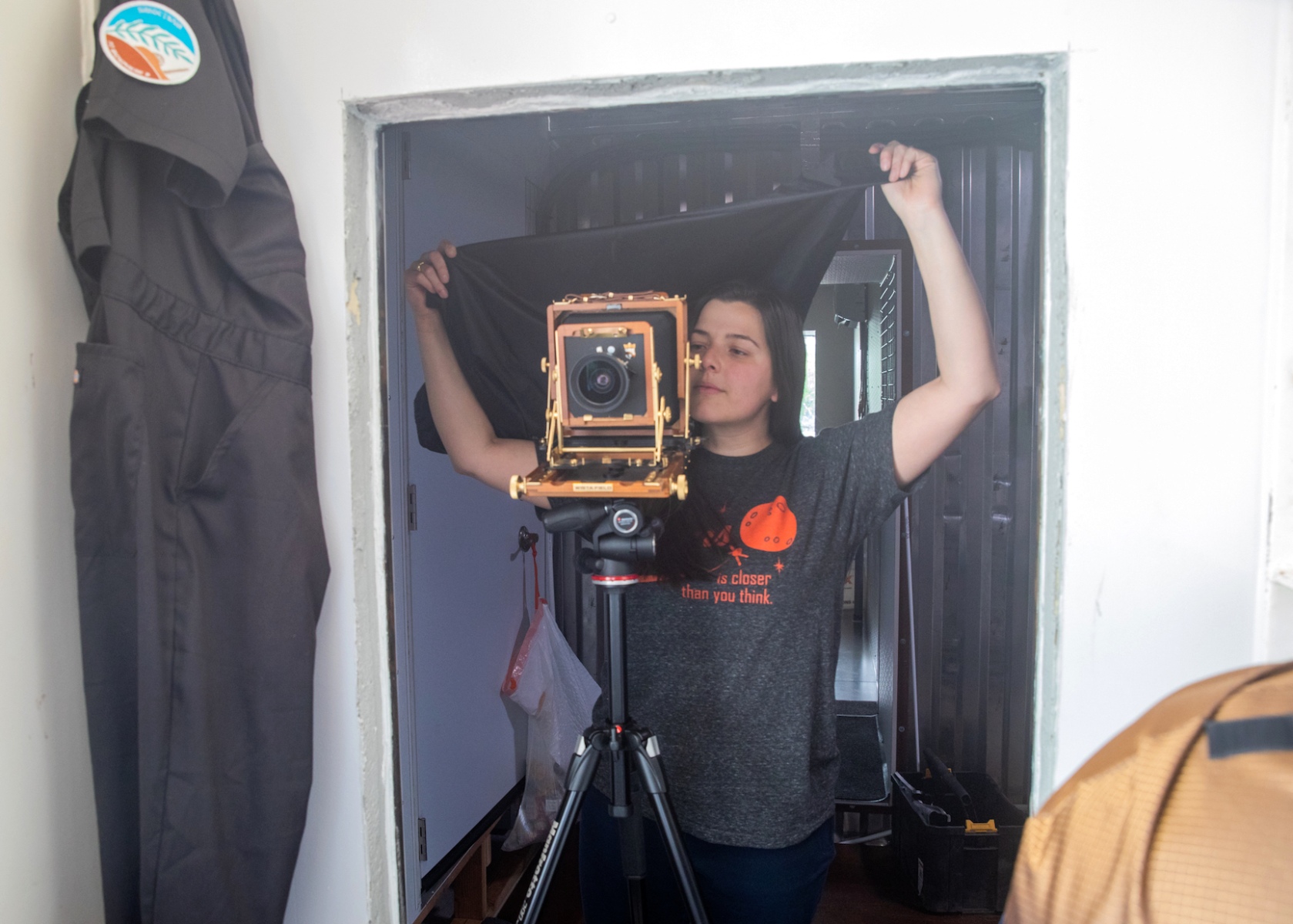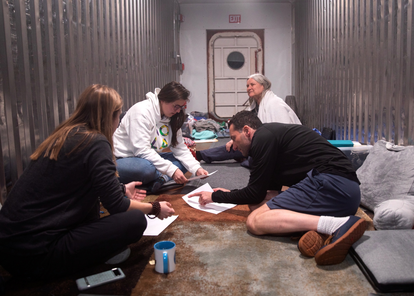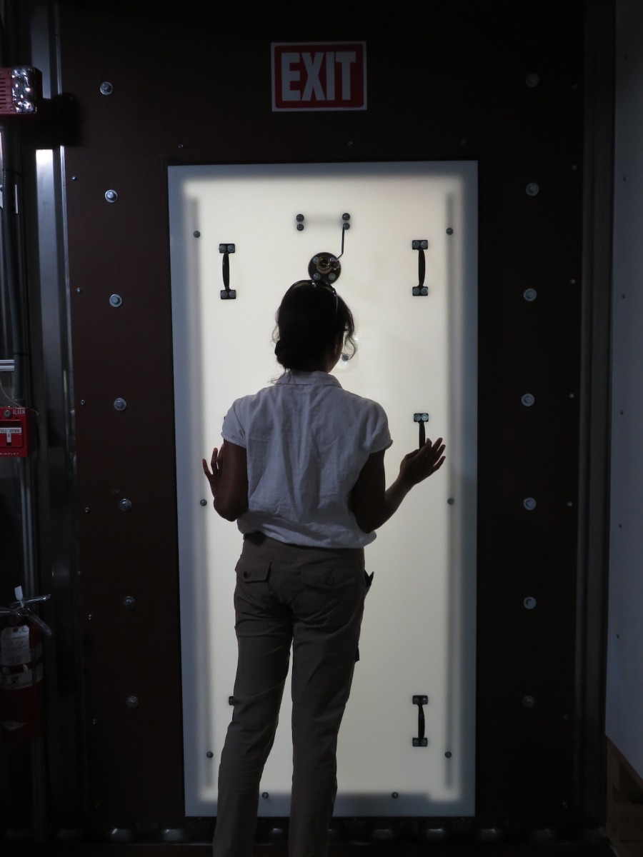 Inclusion II, the second crew to enter SAM, the Space Analog for the Moon and Mars, sealed the outer airlock hatch today, May 10, 2023 at 10:05 AM. Interviews with the French Televisions commenced at 8:30 AM and continued until 9:45 AM when one by one, Bindhu Oommen, Keridwen Cornelius, Sahda Haroon, and Andy Squires entered SAM carrying their personal bins. They left their street shoes on the airlock landing and donned hab shoes provided by Astral Designs.