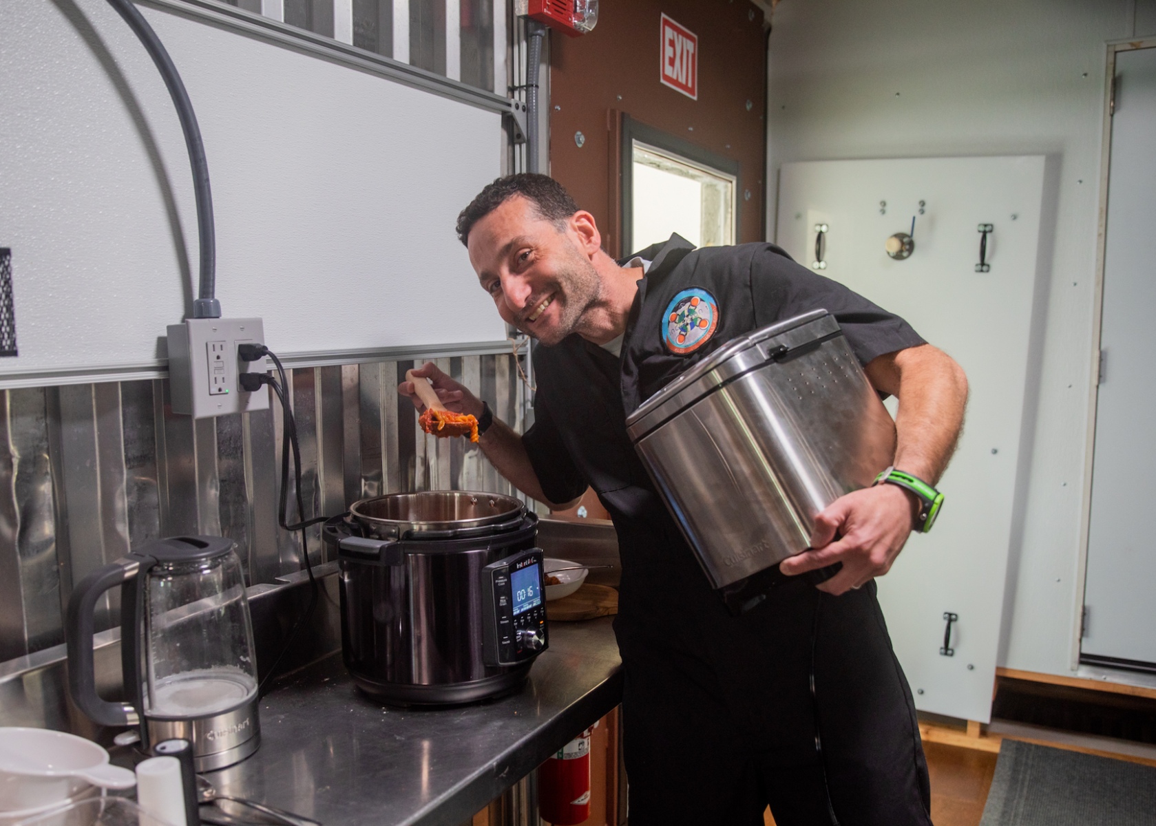 As with the first crew to enter SAM, Inclusion II underwent an extensive training in the function and operation of SAM prior to entry. Given the feedback and experience of training the first crew, the training time was expanded to a four-hours introduction to using air quality sensors and monitors, capturing the storing data, followed by a brief course in the donning and doffing of a pressure suit prior to the actual EVAs. The second full day (today) saw the crew training in: