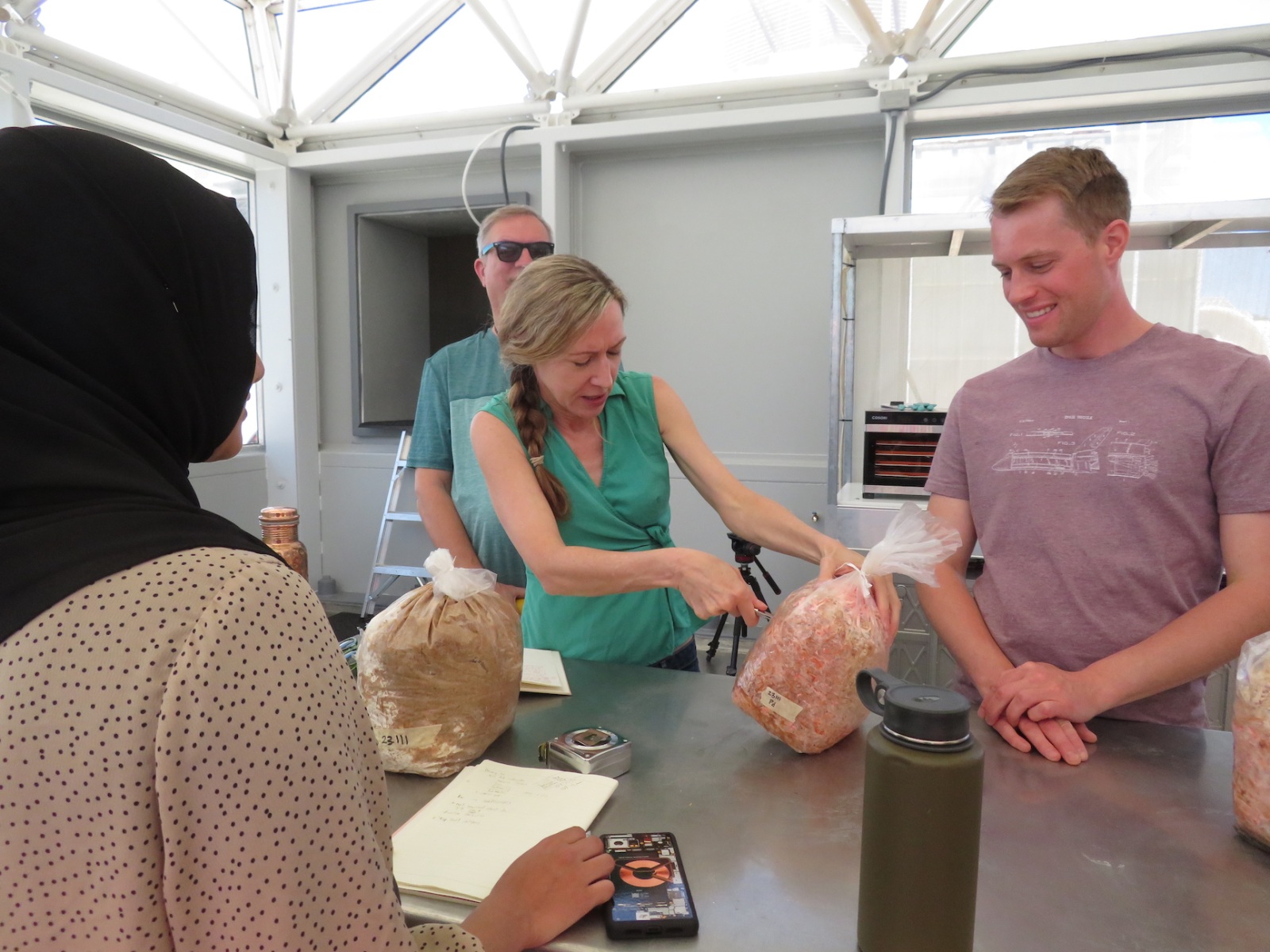As with the first crew, Inclusion II will be operating SAM in Mode 2 (pressurized, flow-through) for the majority of their mission, but with intervals of Mode 3 (pressurized, sealed) in order to monitor discrete rise and fall of carbon dioxide (CO2) and the overall leak rate of SAM, in this configuration. The crew will enjoy an all vegetarian diet of dehydrated and freeze-dried foods, with an exciting (from a vegetarian point of view) variety of grains and legumes, pasta, and spices, and opportunity to make home made bread.