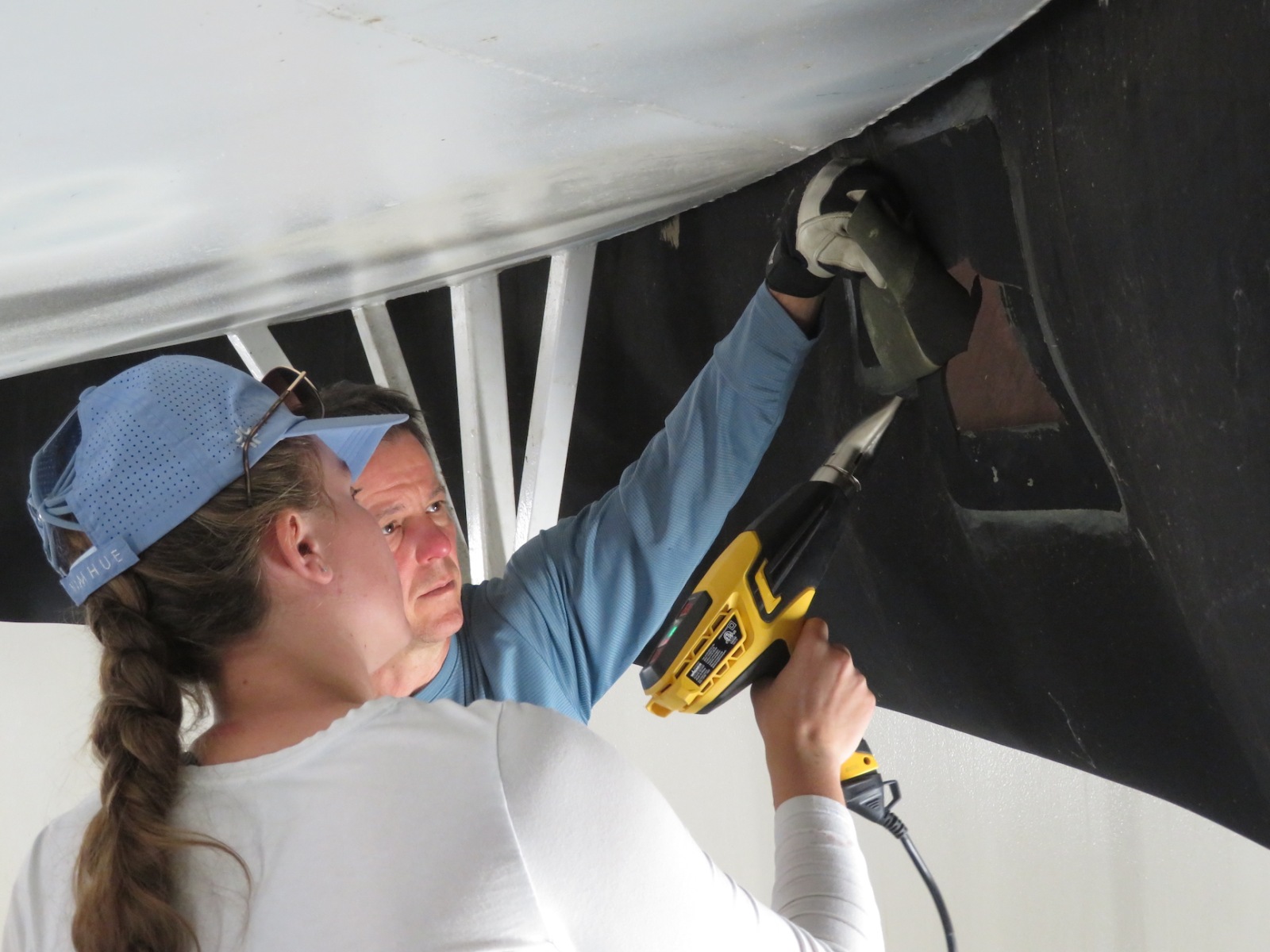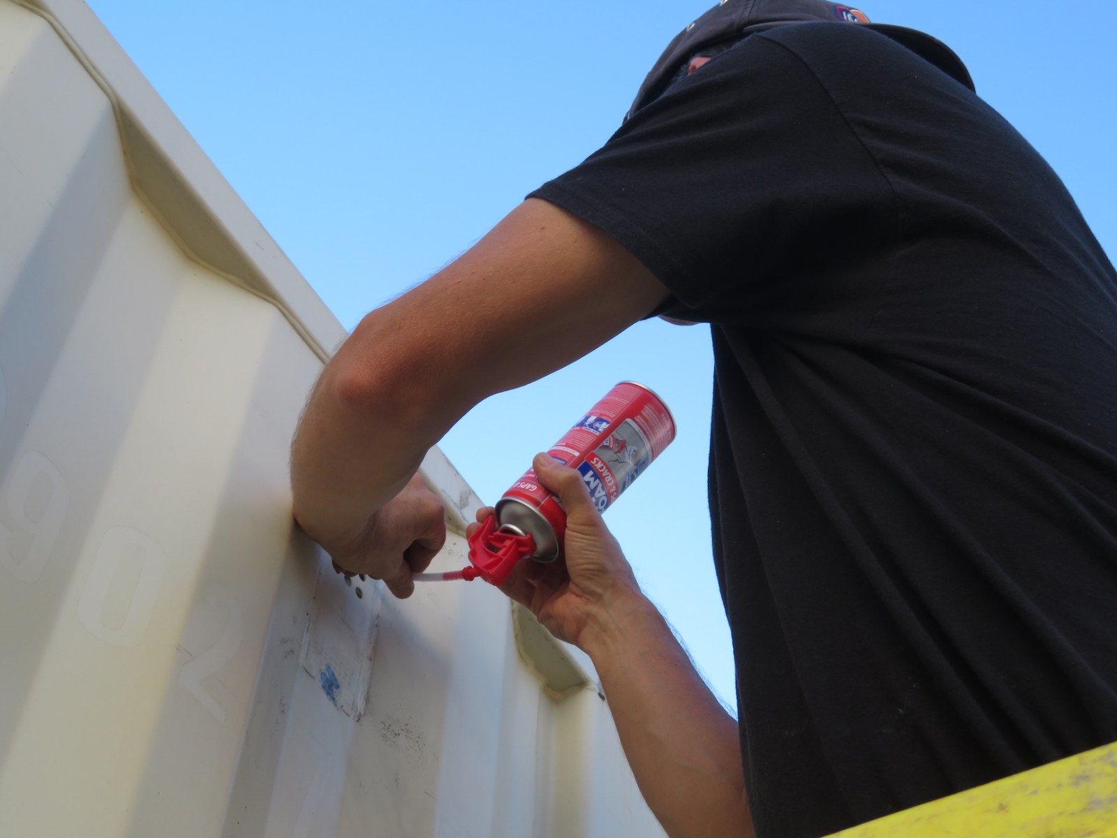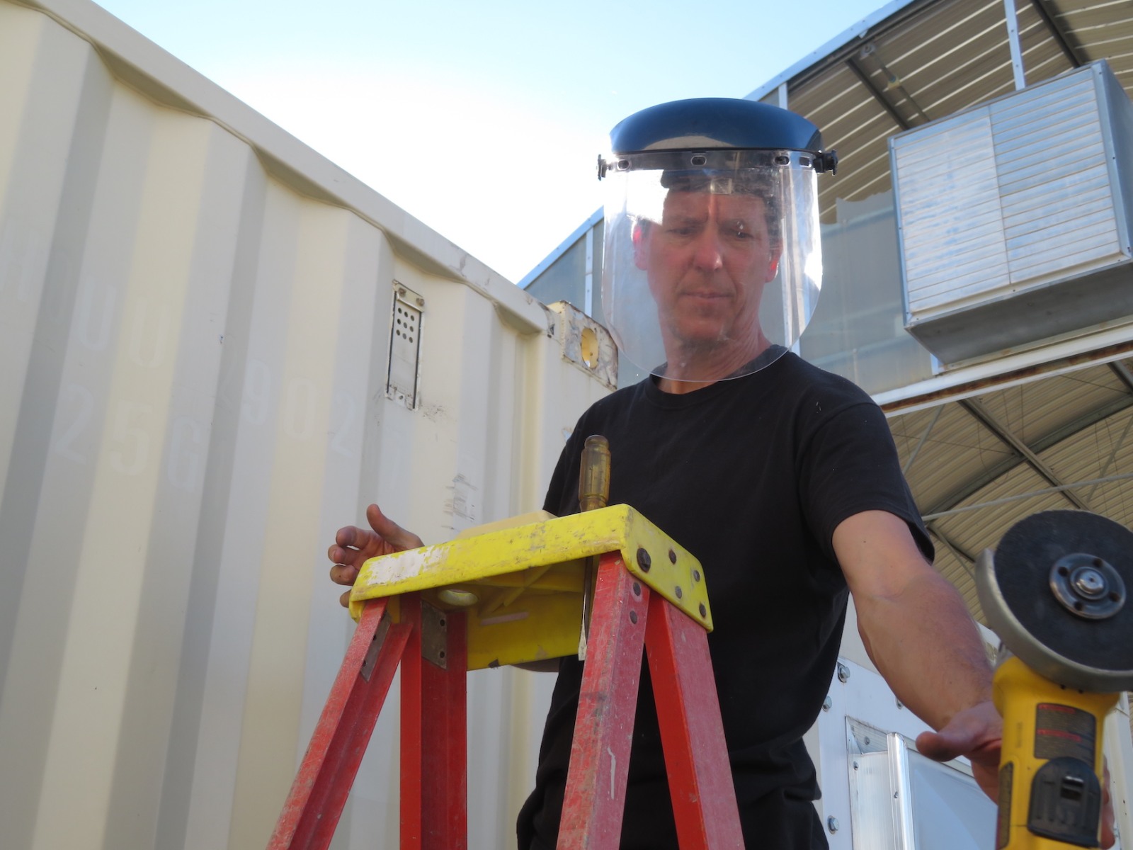 This past week has seen tearing things apart more than putting them together, which feels like progress lost even when we know it is the best way forward. In order to weld the perimeter of the end of the 20′ container we had to remove the west-end insulation panels installed this summer—two days of effort undone in a few hours. We learned how well the construction adhesive adhered and the properties of expansion foam in small and large spaces. What’s more, we cut channels in the side walls in order to visually see (and later test) the quality of the weld by exposing the seam on the inside for our auditory and visual inspection during consecutive pressure tests.