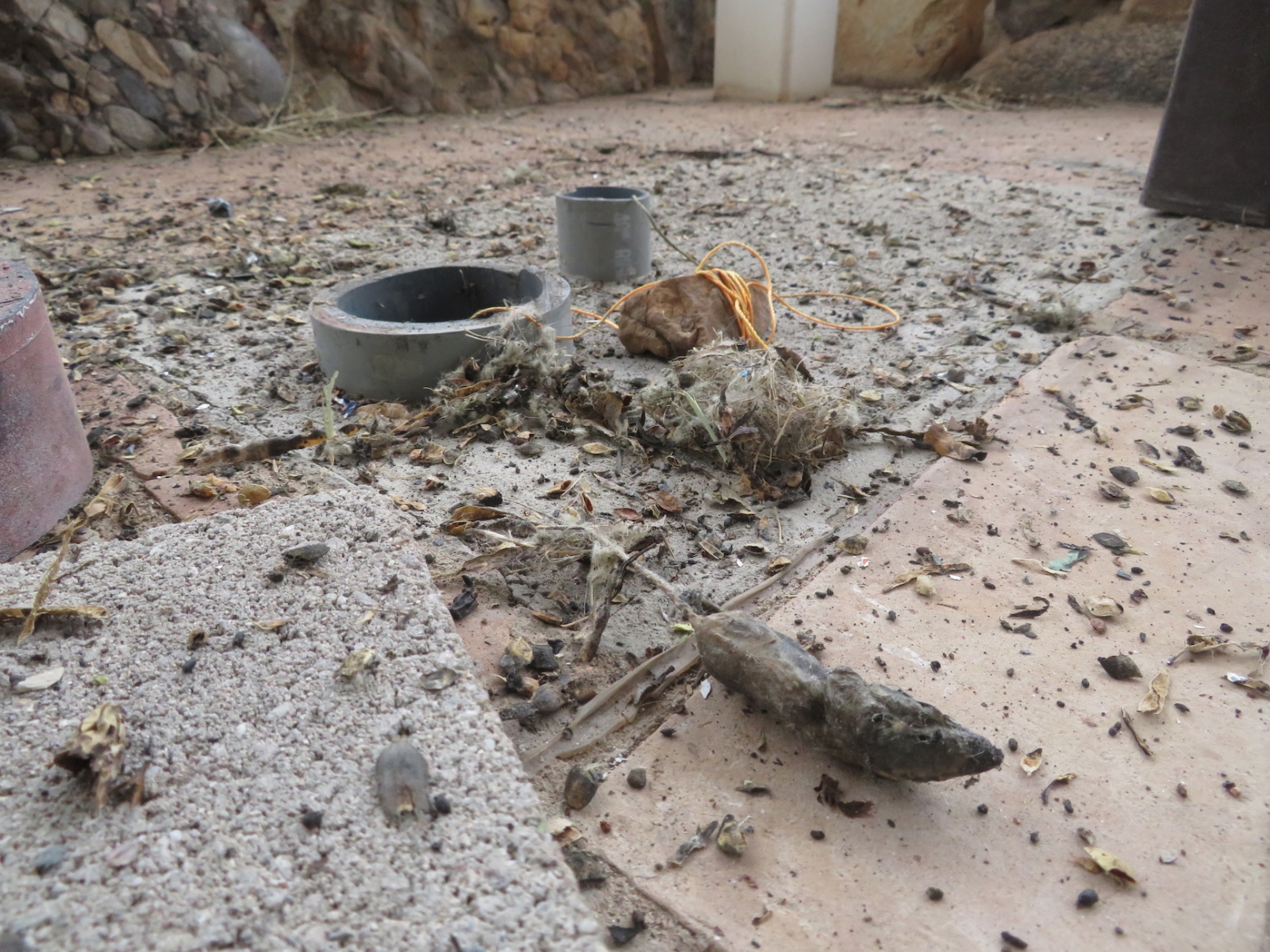 In a project such as this, there are moments no one will forget. One such moment was when we decided to reverse the flow of air in the shop-vac and blow any debris out of the two PVC conduits we retained that once carried power and data from the TM to the computer terminal and data analysis terminal. We were horrified and at the same time overtaken by laughter when not only did a cloud of dirt, seeds, droppings, sticks and twigs fly into the air, but a mummified rat too!