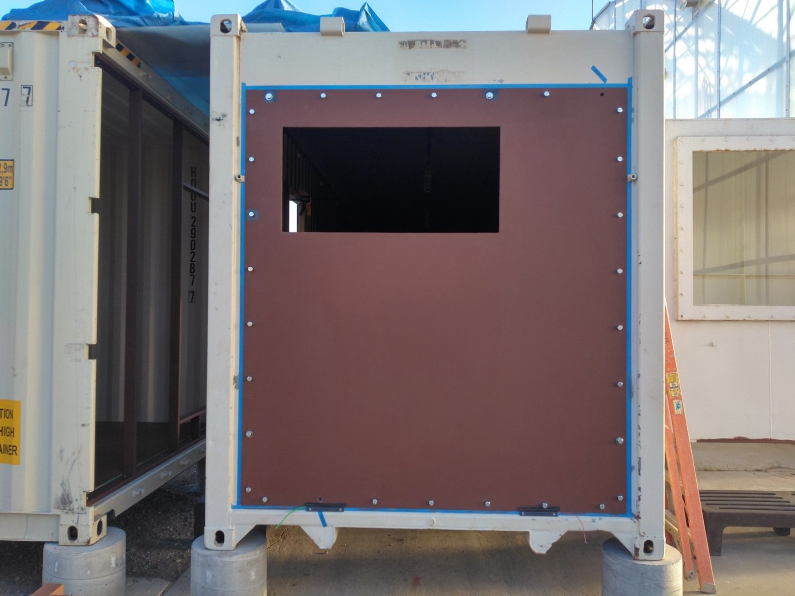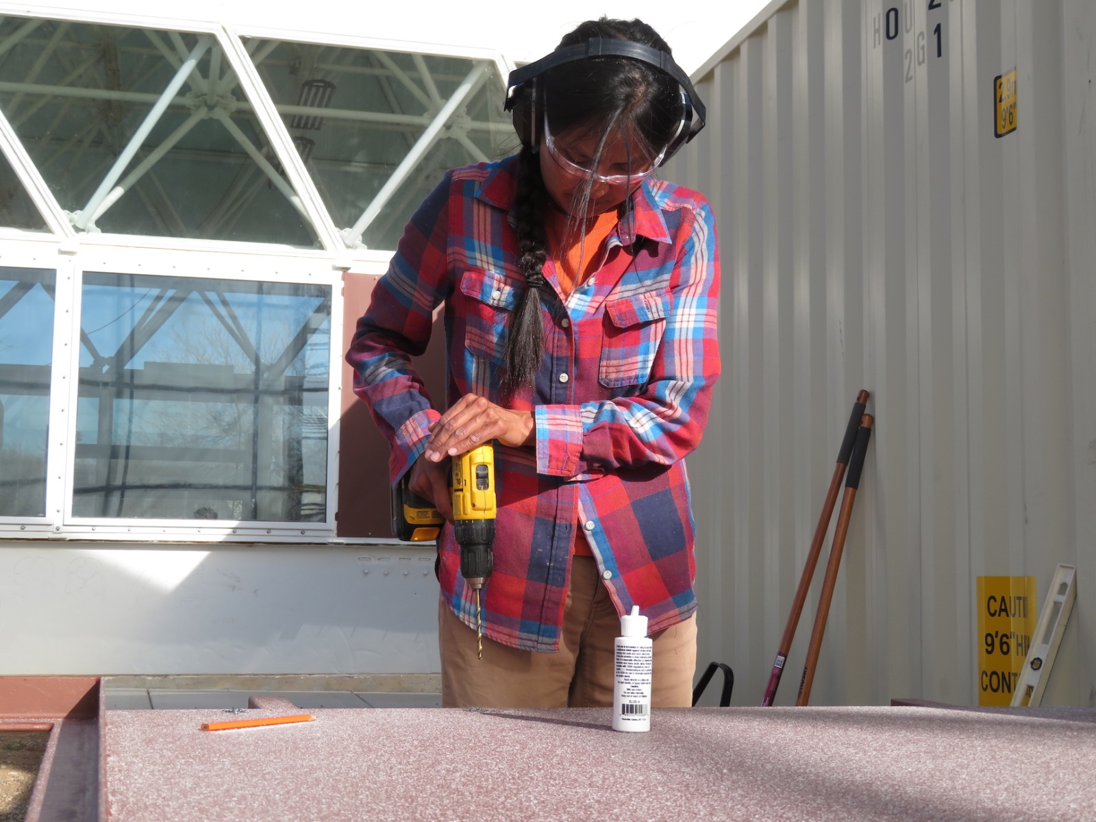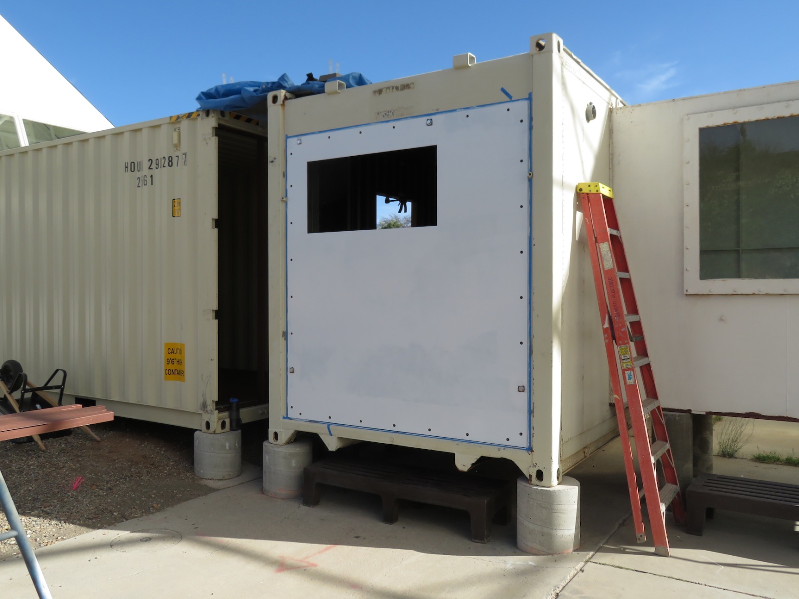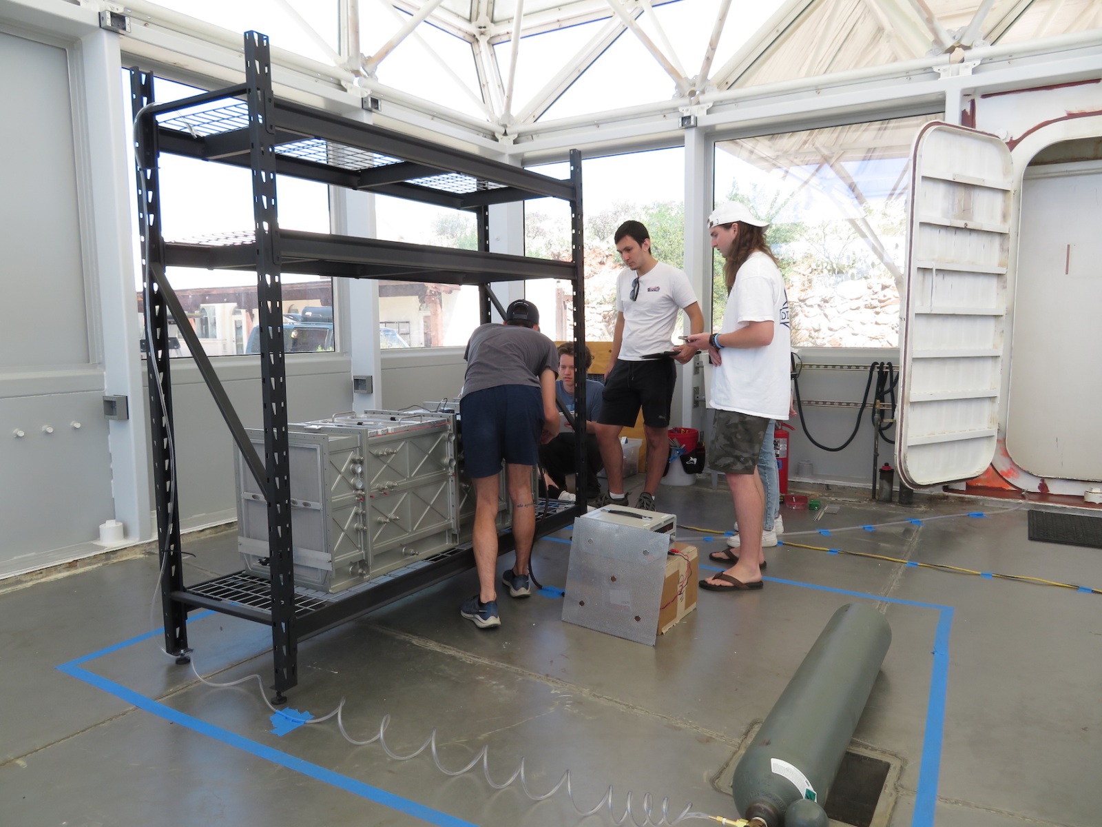 John Z., Kai, Luna, Anastasiya, and John Adams worked to install the backer board and cork tiles over the course of four days, assuring each step was conducted with integrity. Each product selected, from the glue between the backer board and original aluminum rails of the 40′ shipping container, the backer board itself, and the cork (which was simply set down, not glued) were selected for their low- or no-VOC characteristics. Visiting teams to SAM will breathe easy in an environment far healthier than the average American home, and not far from what very well could be a Martian habitat.