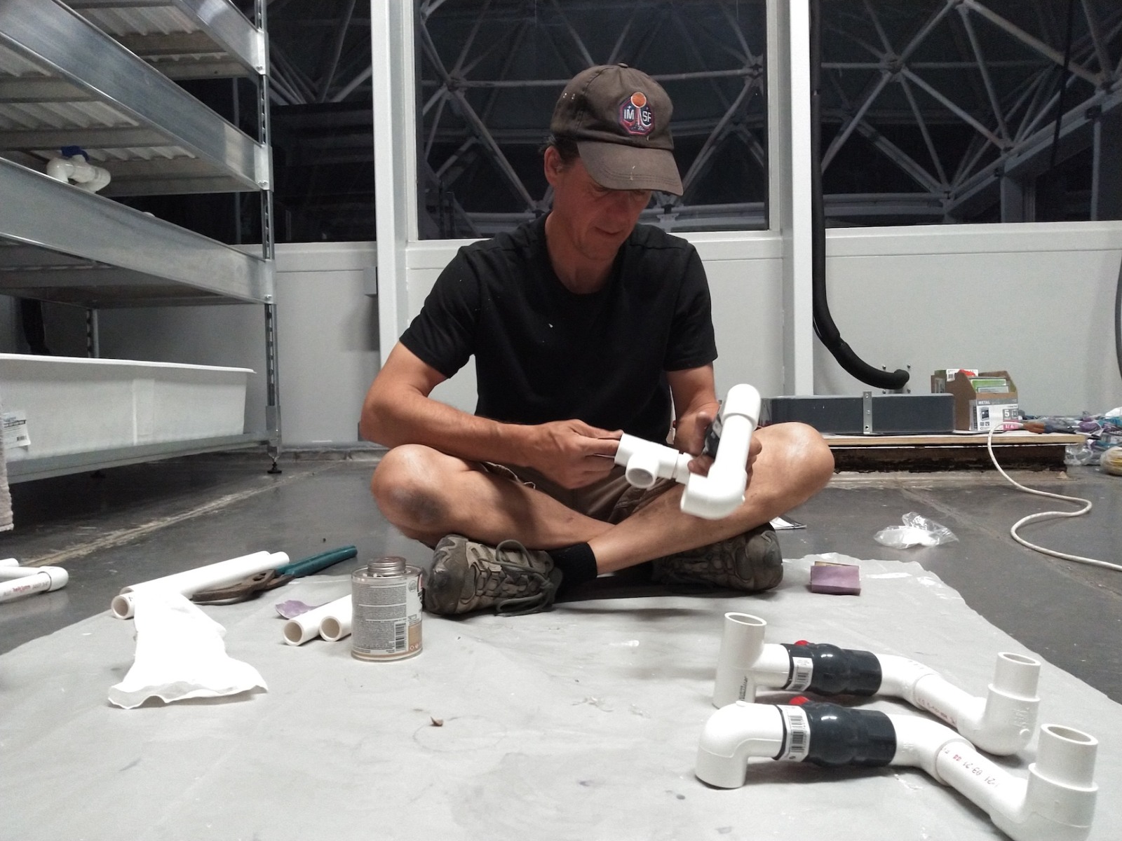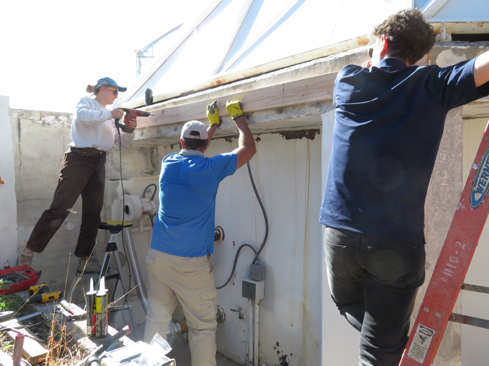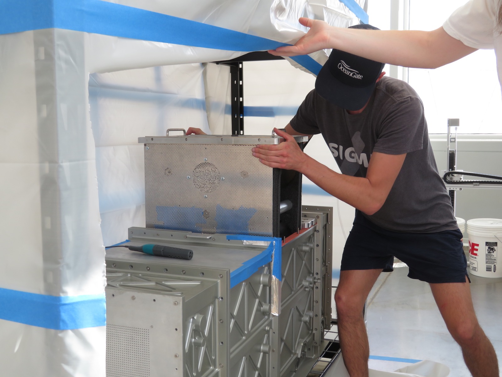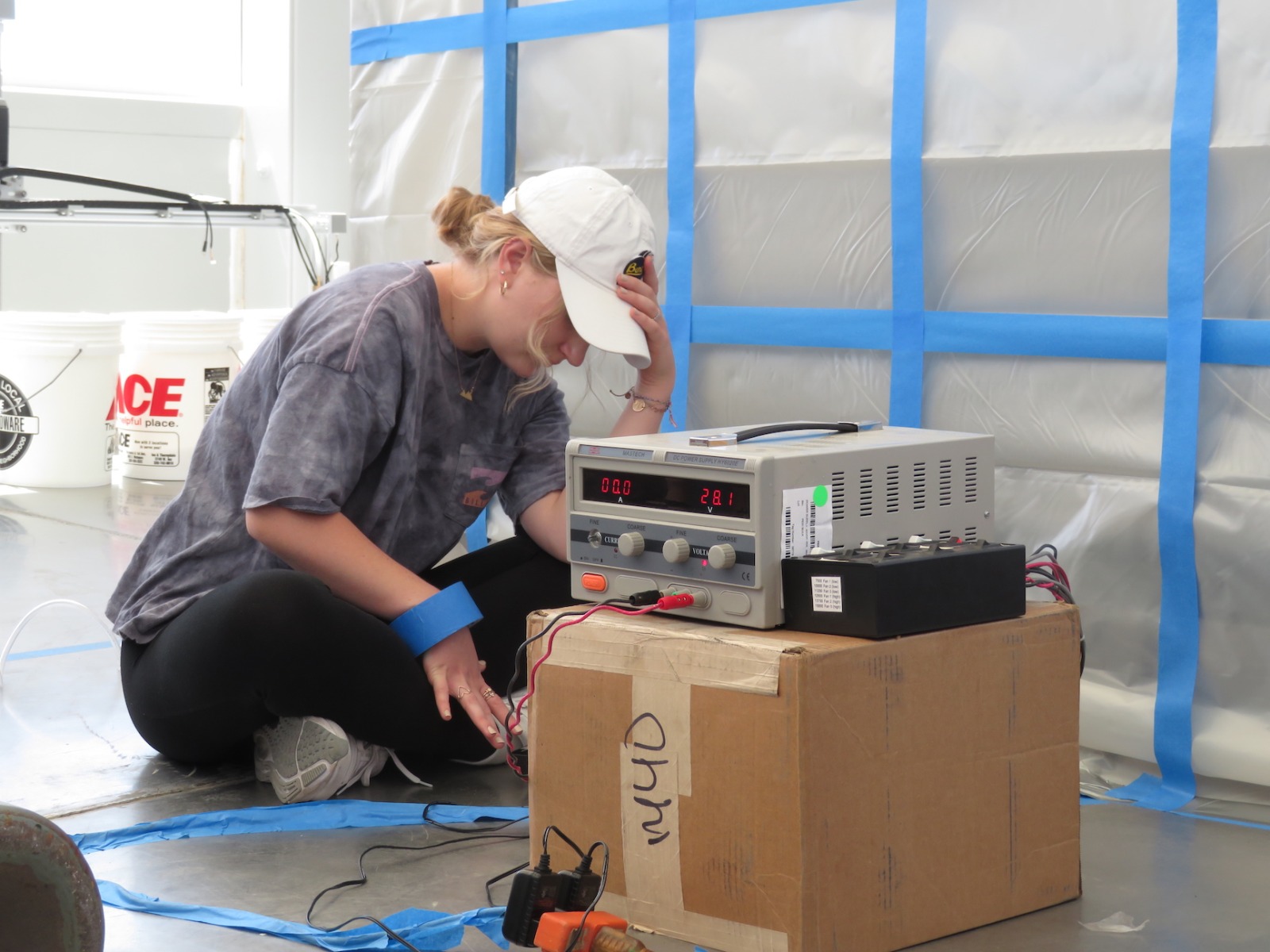 John Z., Kai, Luna, Anastasiya, and John Adams worked to install the backer board and cork tiles over the course of four days, assuring each step was conducted with integrity. Each product selected, from the glue between the backer board and original aluminum rails of the 40′ shipping container, the backer board itself, and the cork (which was simply set down, not glued) were selected for their low- or no-VOC characteristics. Visiting teams to SAM will breathe easy in an environment far healthier than the average American home, and not far from what very well could be a Martian habitat.