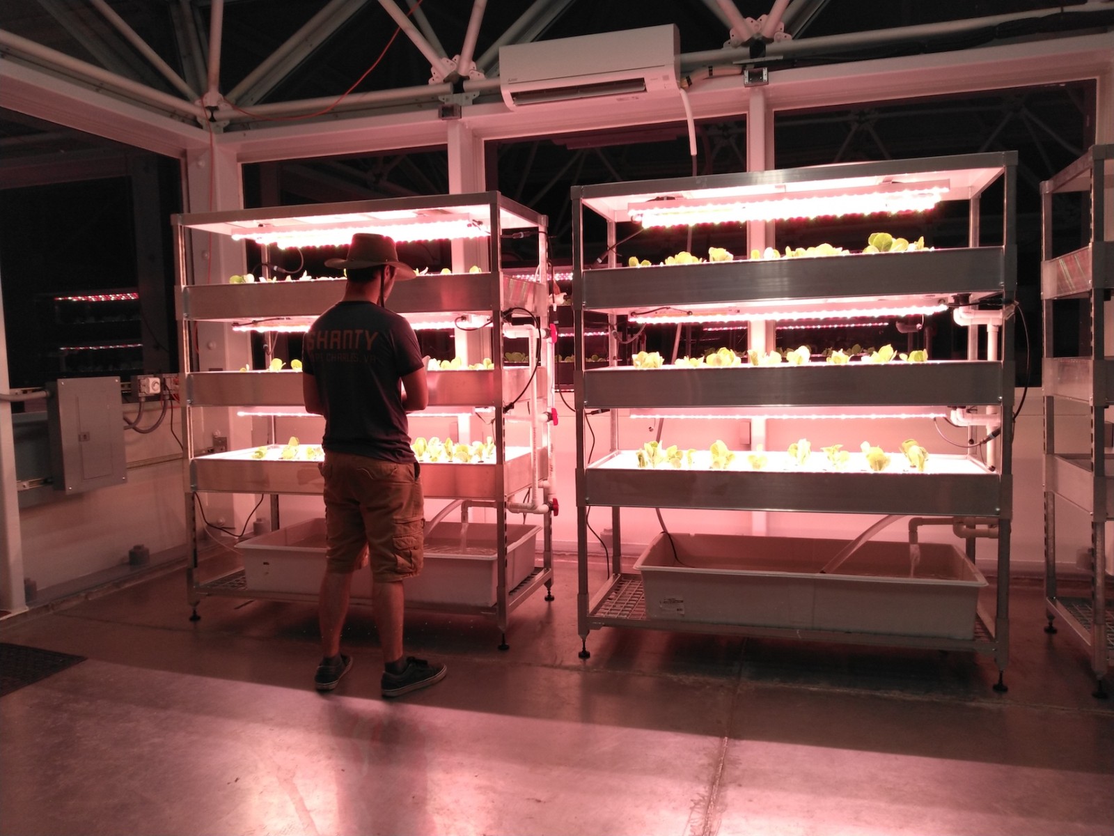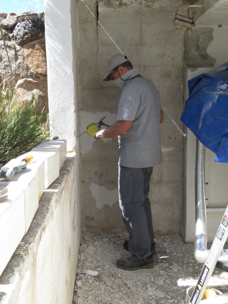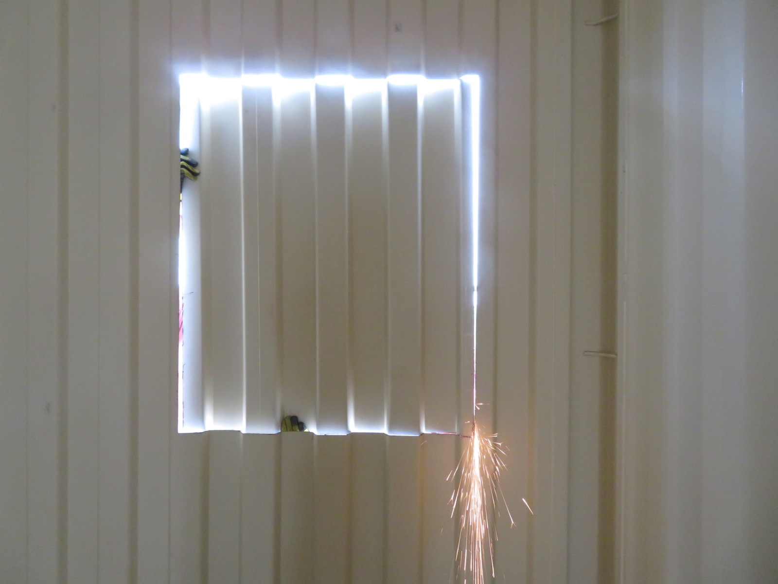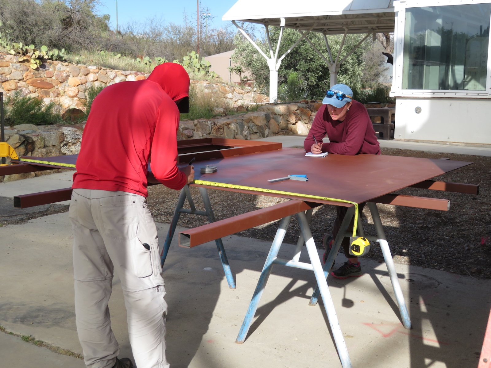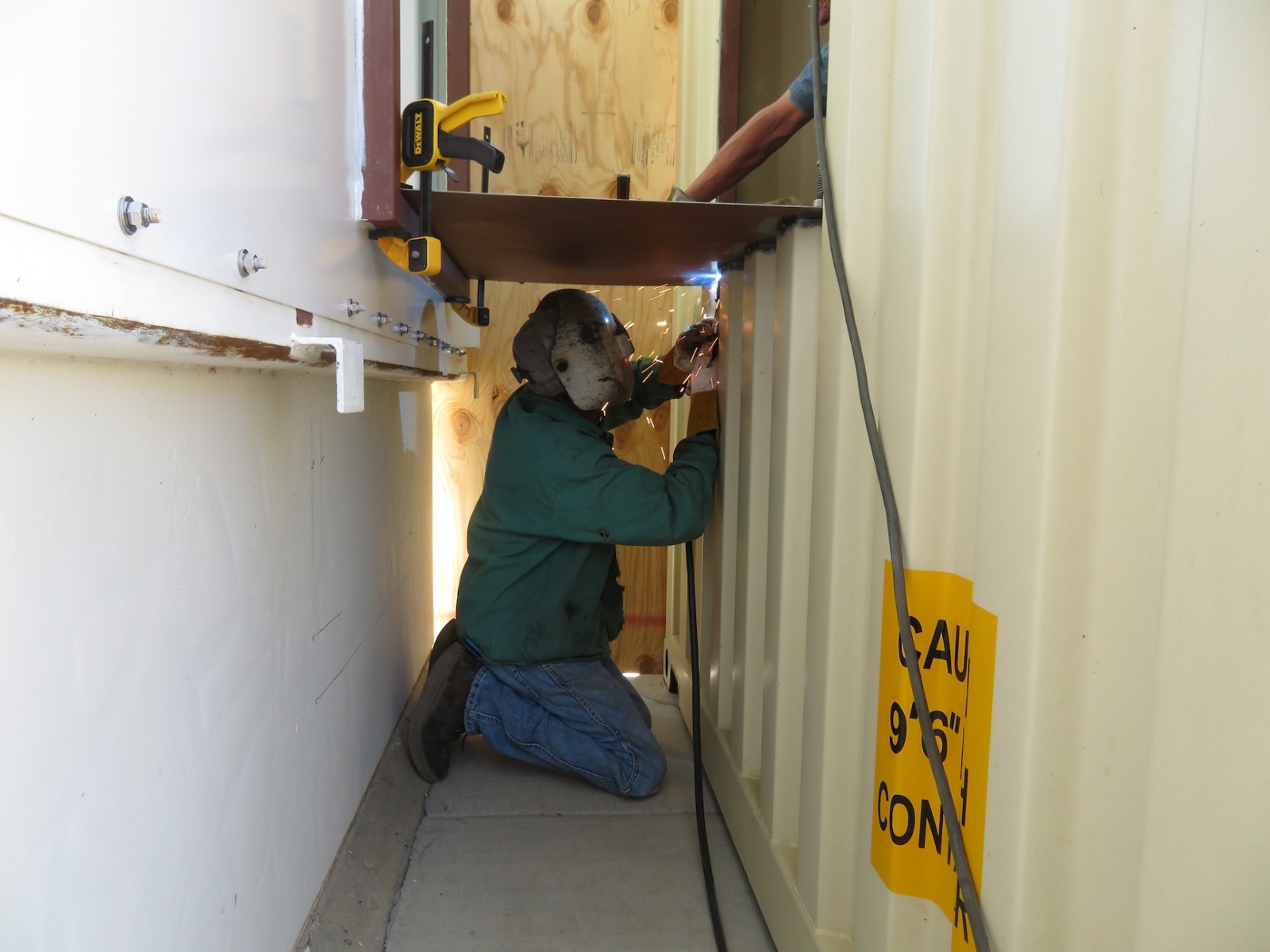 John Z., Kai, Luna, Anastasiya, and John Adams worked to install the backer board and cork tiles over the course of four days, assuring each step was conducted with integrity. Each product selected, from the glue between the backer board and original aluminum rails of the 40′ shipping container, the backer board itself, and the cork (which was simply set down, not glued) were selected for their low- or no-VOC characteristics. Visiting teams to SAM will breathe easy in an environment far healthier than the average American home, and not far from what very well could be a Martian habitat.