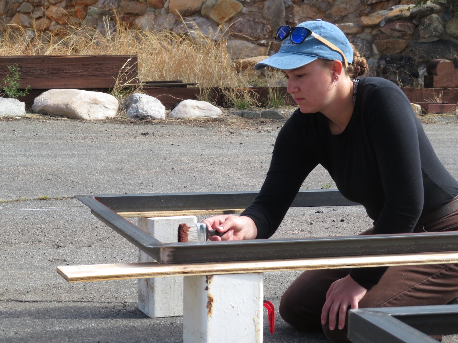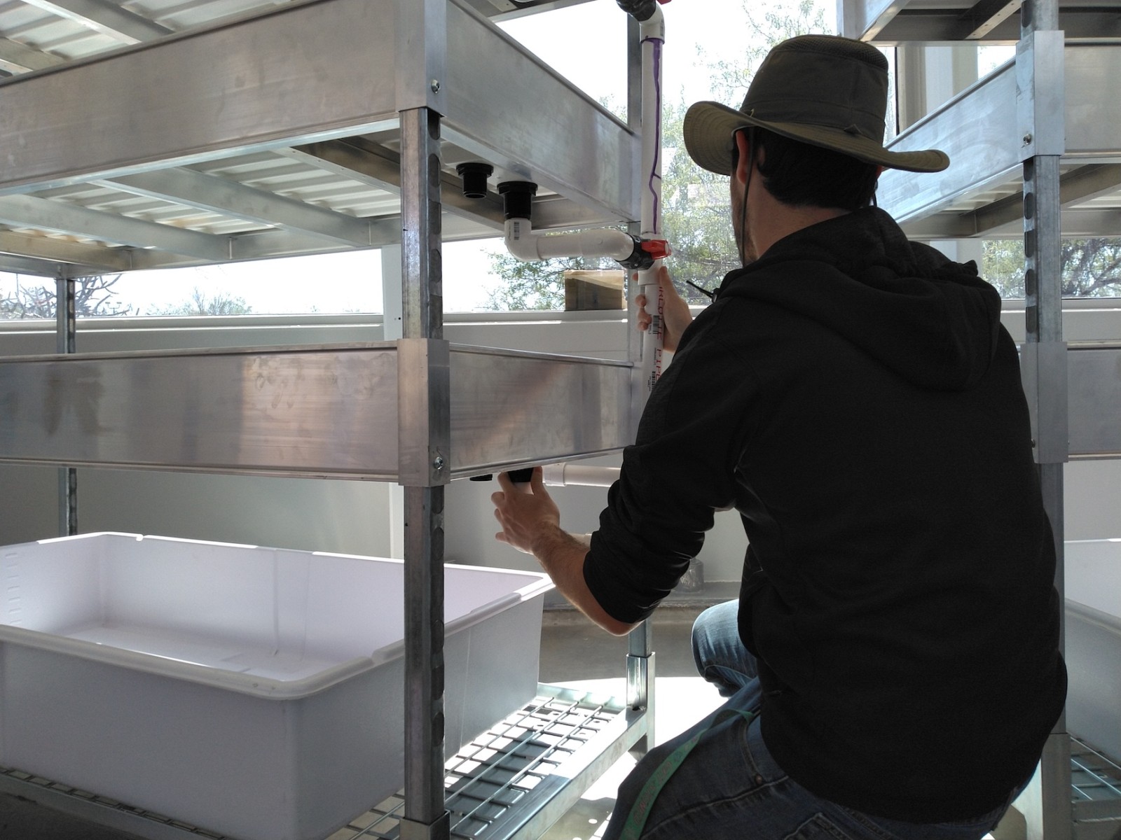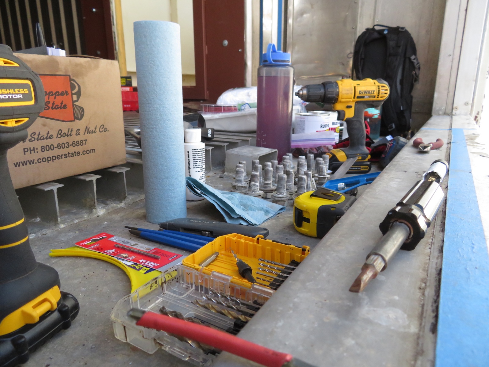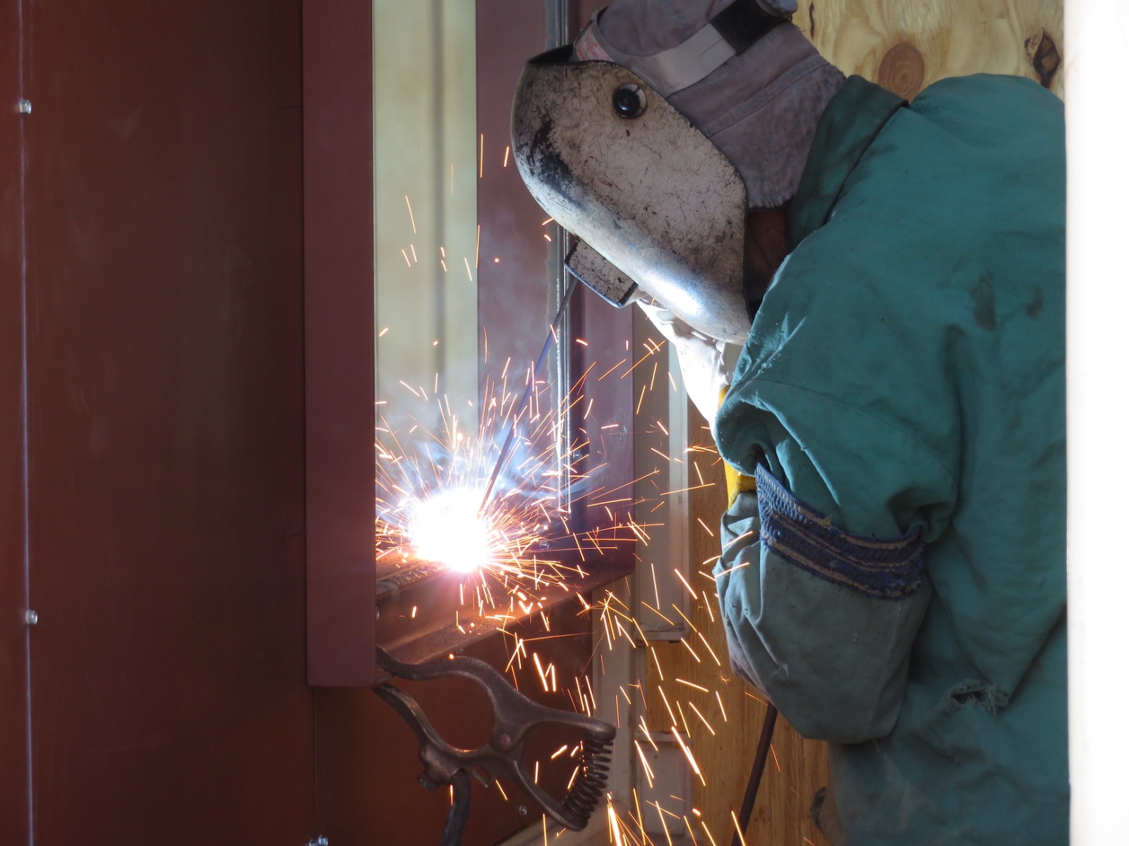John Z., Kai, Luna, Anastasiya, and John Adams worked to install the backer board and cork tiles over the course of four days, assuring each step was conducted with integrity. Each product selected, from the glue between the backer board and original aluminum rails of the 40′ shipping container, the backer board itself, and the cork (which was simply set down, not glued) were selected for their low- or no-VOC characteristics. Visiting teams to SAM will breathe easy in an environment far healthier than the average American home, and not far from what very well could be a Martian habitat.