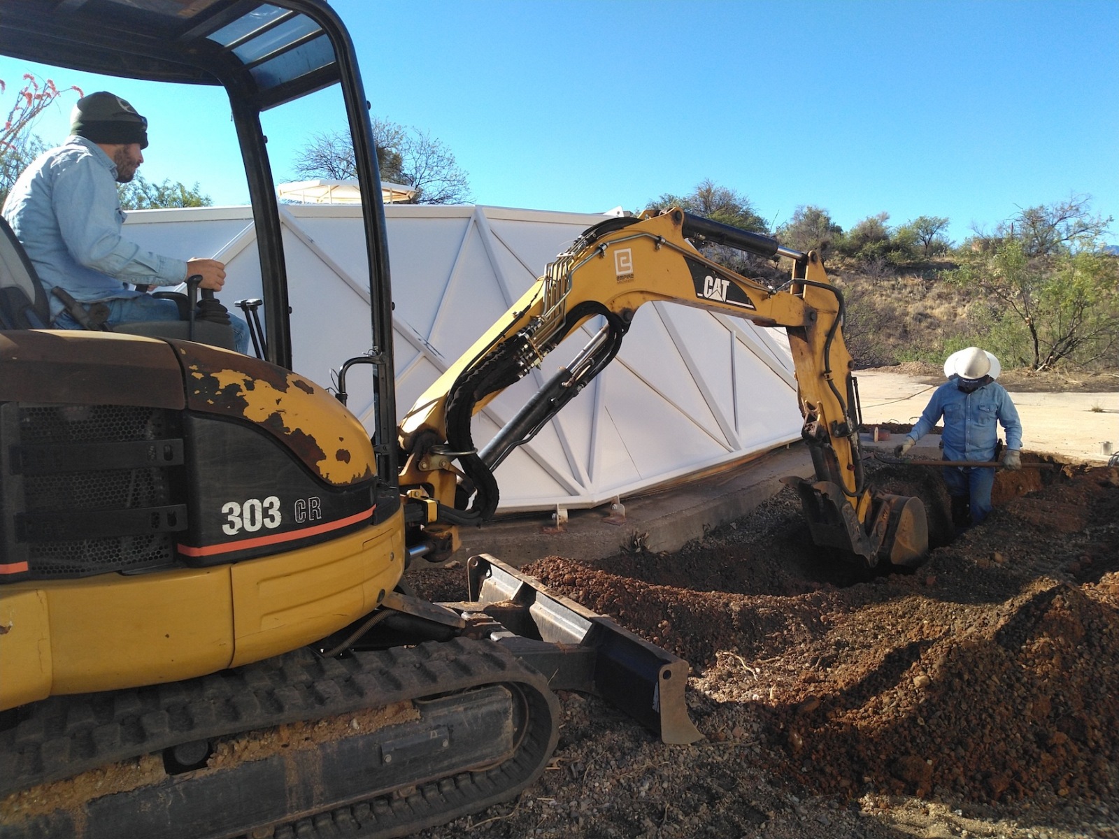 Notice how completely casual Trenton and Natasha appear, despite the intense heat?! As it has been said many times, “It’s a dry heat” We soak our outer shirts with the hose every thirty minutes, enjoy the constant breeze in this high desert region, and drink a lot of water.