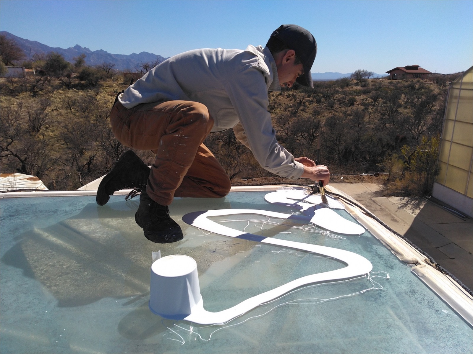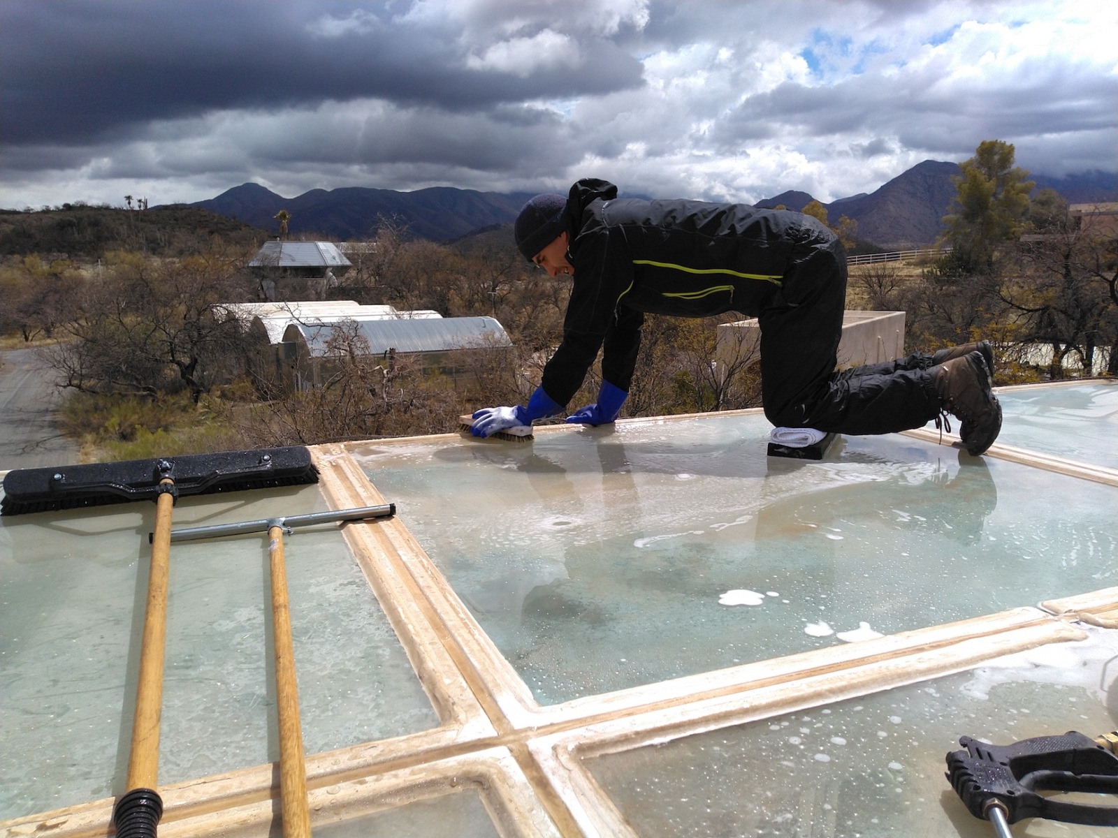 Six weeks have come and gone as though they were just a few days and at the same time a full year in the renovation of the Test Module at Biosphere 2 (B2). The first days were completely overwhelming, Trent and I covered cap to boot in dust, rust, and thirty years of grime. With the steadfast help of B2’s Tim and Terry, and three weeks effort by Cameron too, we moved beyond grinding, sanding, and cleaning to the tipping point of starting to put the Test Module back together again.