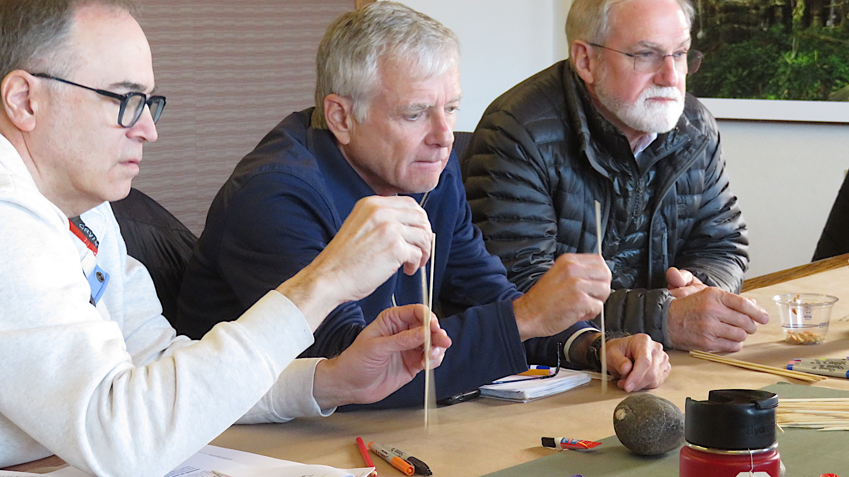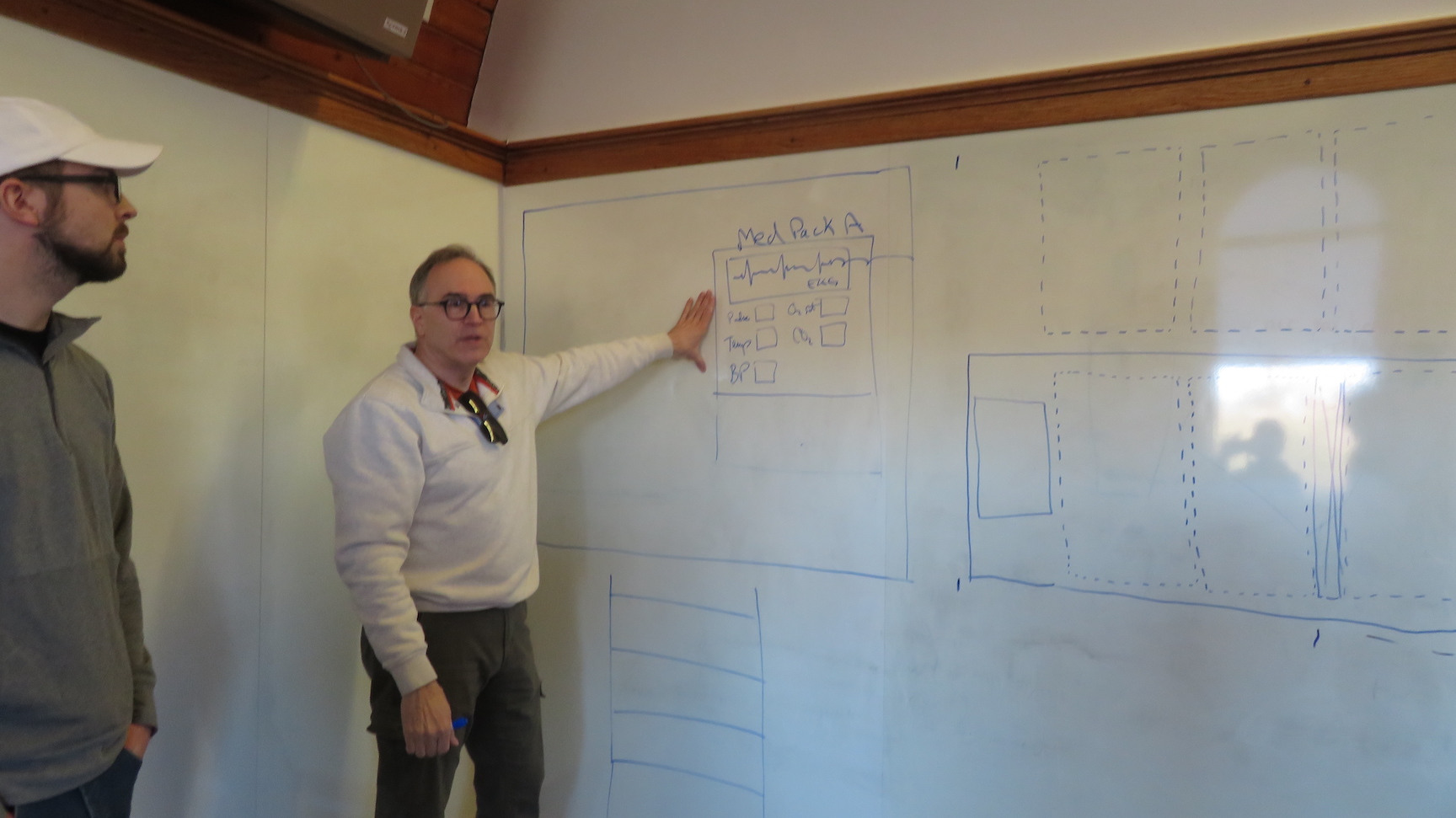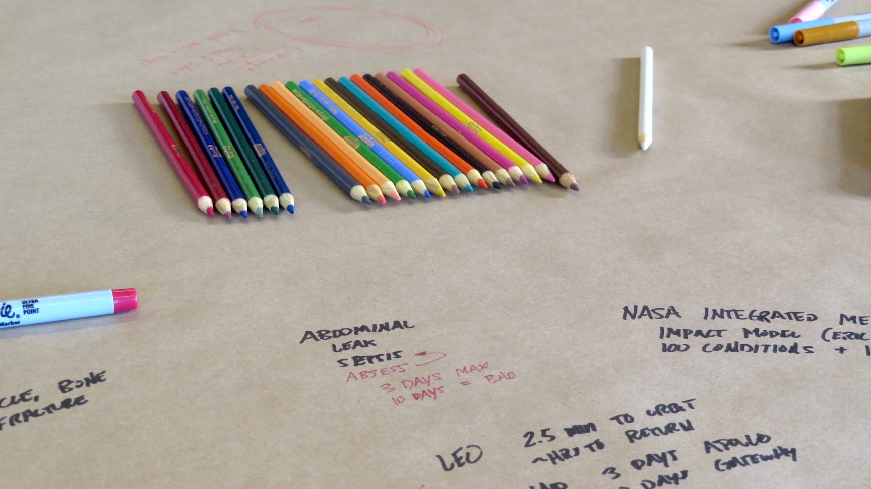Bindhu and Kai lead the Surgical Bay workshop at B2 January 17-19. They welcomed five practicing surgeons to Biosphere 2 Friday afternoon, spent all of Saturday at SAM and in the B2 board room designing a medical bay capable of a dynamic array of surgical procedures, all conducted far, far from home. It was a unique event, with all home cooked food and catered meal (one of the attendees claimed Kai’s omelette was the best he had ever consumed!). There was no use of computers or slide presentations with a half day of hands-on design, discussion, and even an engineering challenge with wooden sticks, string, superglue and a few substantial rocks. It was casual, creative, stimulating, and engaging. Bindhu is now following up with the attendees, merging feedback to expand the draft paper written by Kai and Bindhu, while other team members explore state of the art in NAVY submarines and remote terrestrial habitats.
