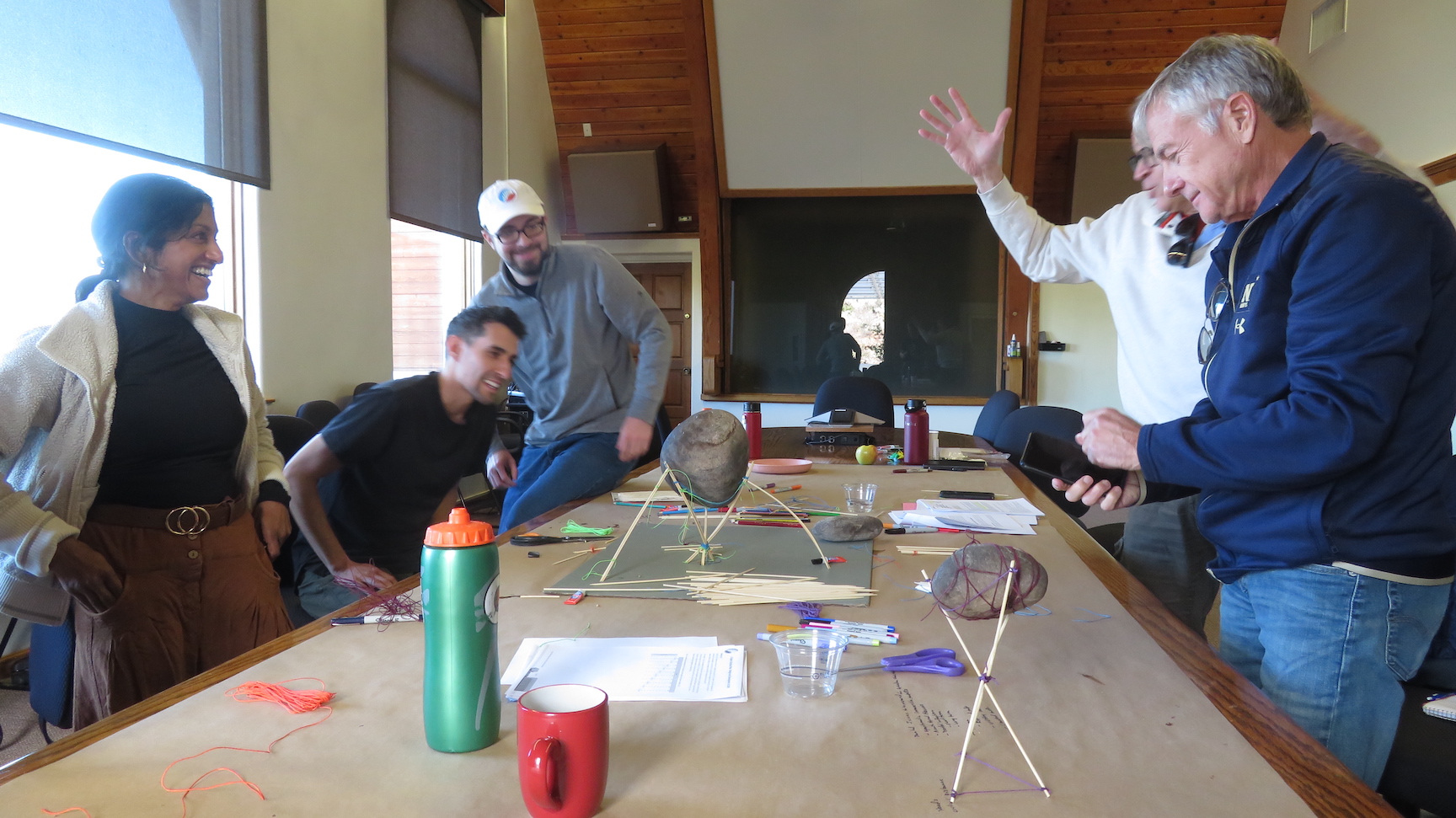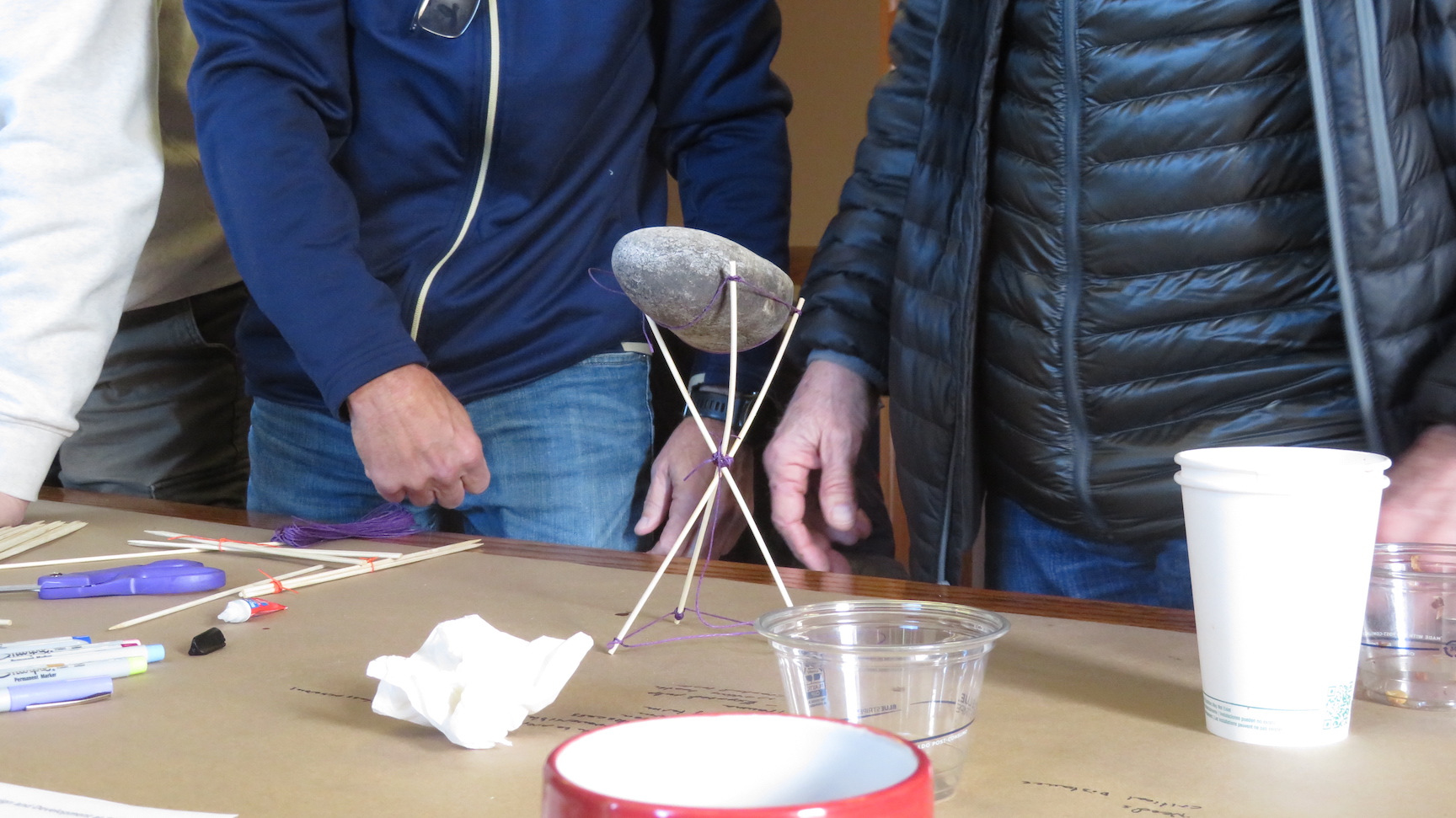 This was not a typical gathering with laptops, PowerPoint, and laser pointers. In fact, no one gave a presentation at all. Rather, the goal as to engage hands-on, to be designing as a team, working with our hands. Kai Staats led a small engineering challenge midway through the first day, to stimulate the way we solved problems.