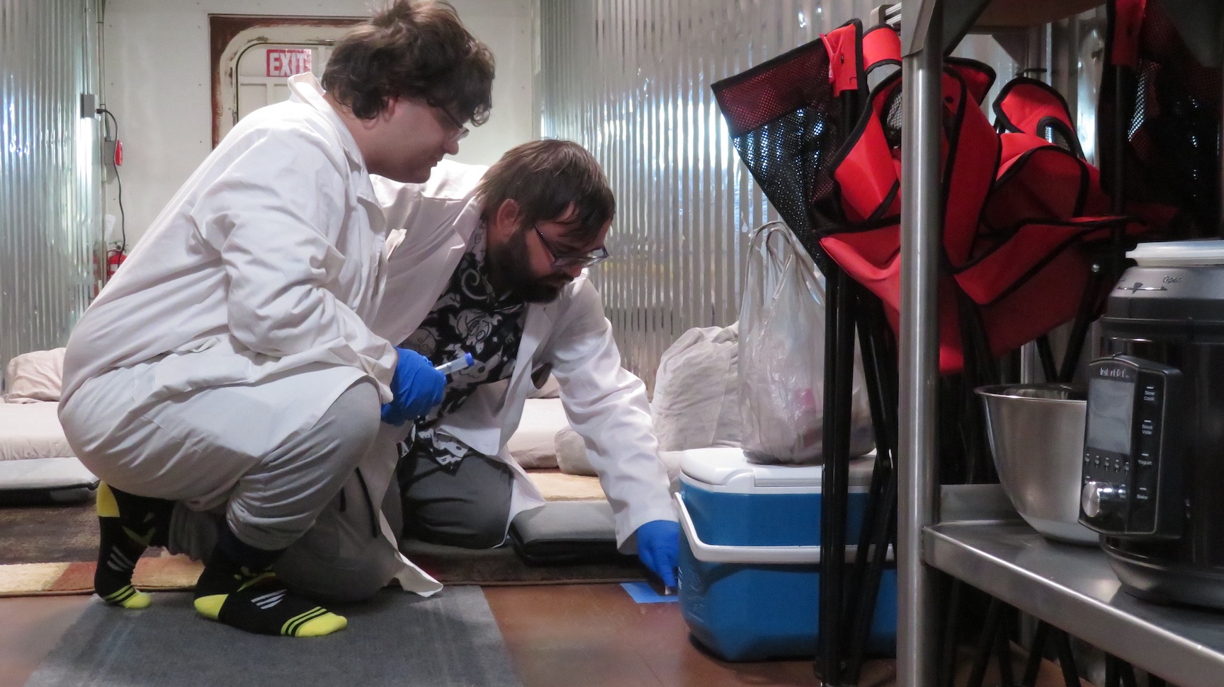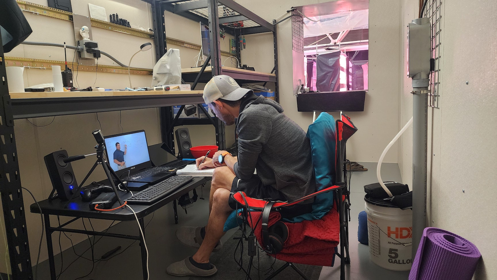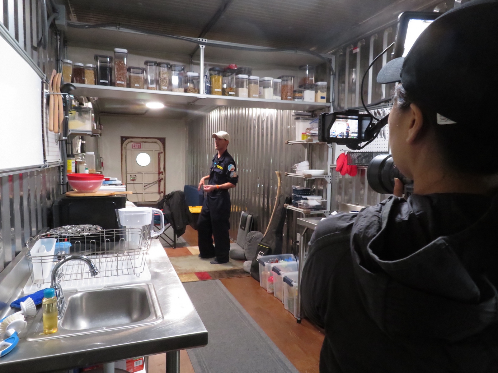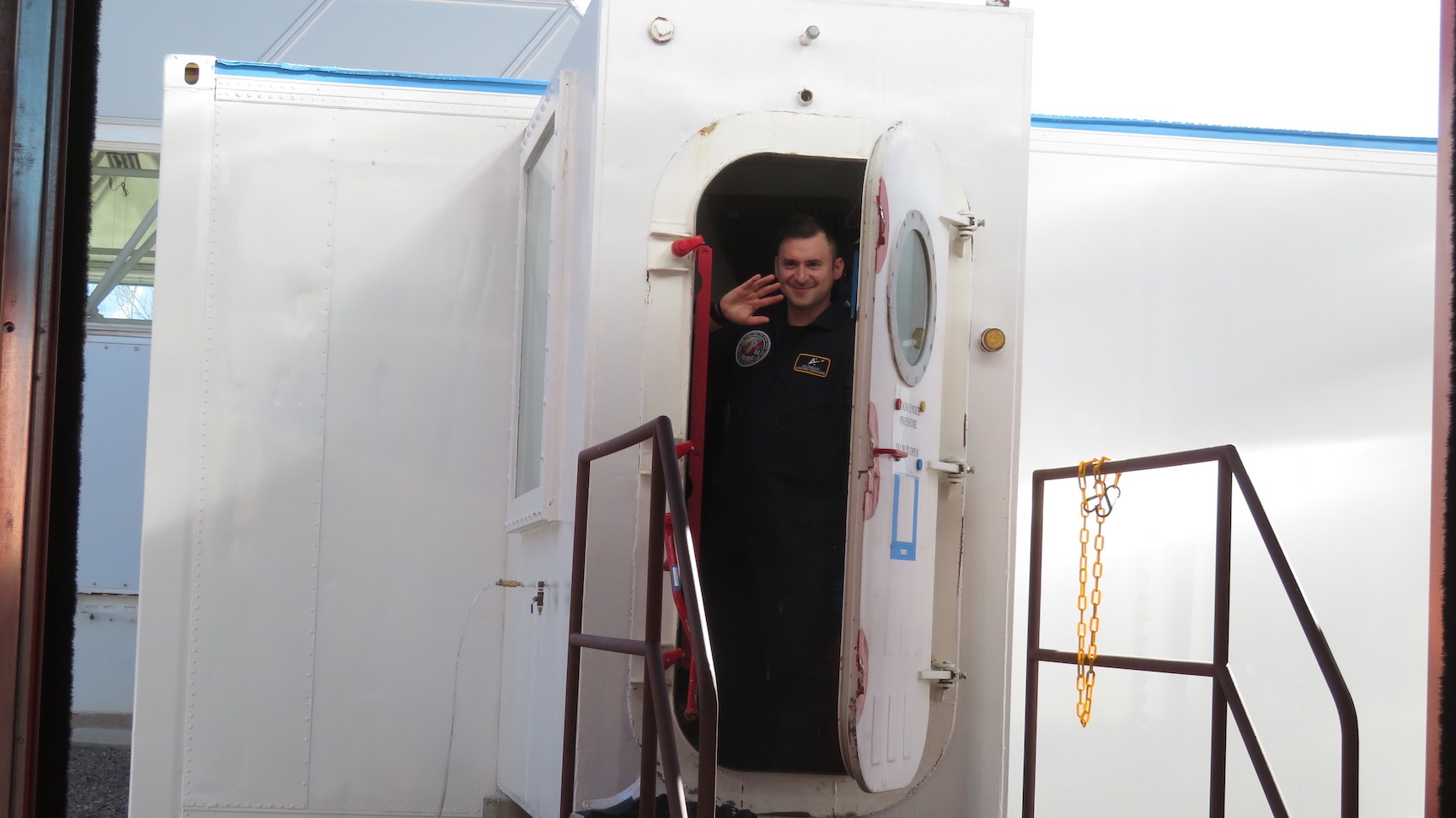 Matthias’ answers were insightful and moving. He shared how important this experience was to him, as a US veteran who served in Kuwait and has since worked principally in IT and construction, to have this opportunity to not only help build SAM but then participate in this pinnacle study. He emphasized the need for a strong daily routine, a solid ‘flight plan’, and how his time alone allowed him to explore a vegetarian diet, play guitar, read printed books, watch 1940s sci-fi films, and paint for the first time in his life. He carefully described his awareness of the plants that sequestered the carbon dioxide he generated, witnessing how each plant was unique, some with fruit bodies, some without.