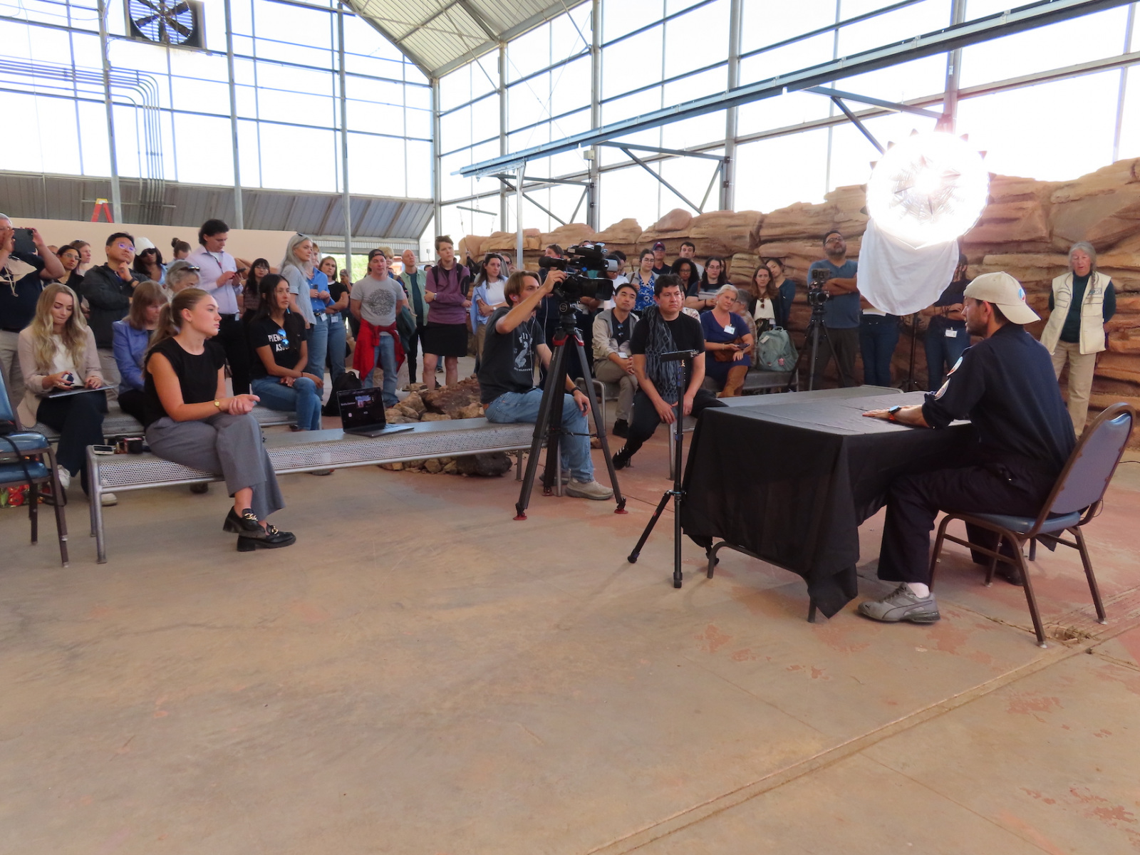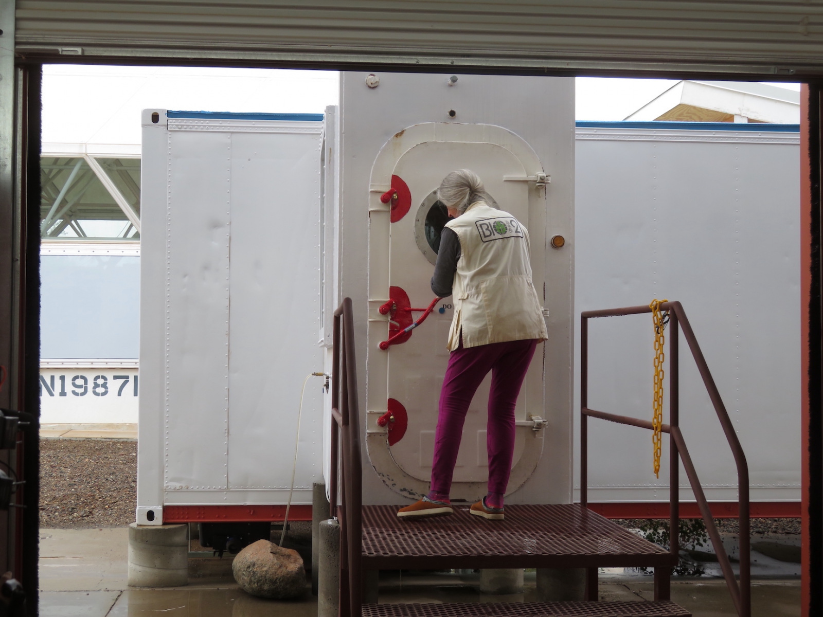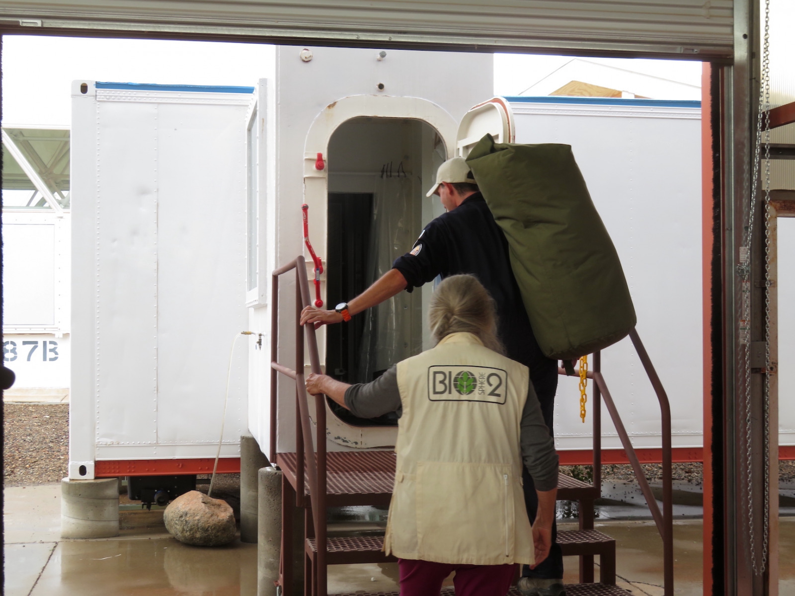 Today, Monday, October 27, at 10:50 am, SAM team member Matthias Beach exited the sealed SAM vessel following a two weeks, solo stay. He was welcomed by Dr. Linda Leigh, one of the original eight Biosphere 2 crew members from the 1991-93 sealed experiment, News Channel 13 (KOLD), a University of Arizona documentary film and reporting team, and much to his surprise, the entire assembly of the 2025 Gastronauts Conference, who asked an incredible array of meaningful questions focused on his diet, sleep, and exercise routine while sealed inside for those two weeks.