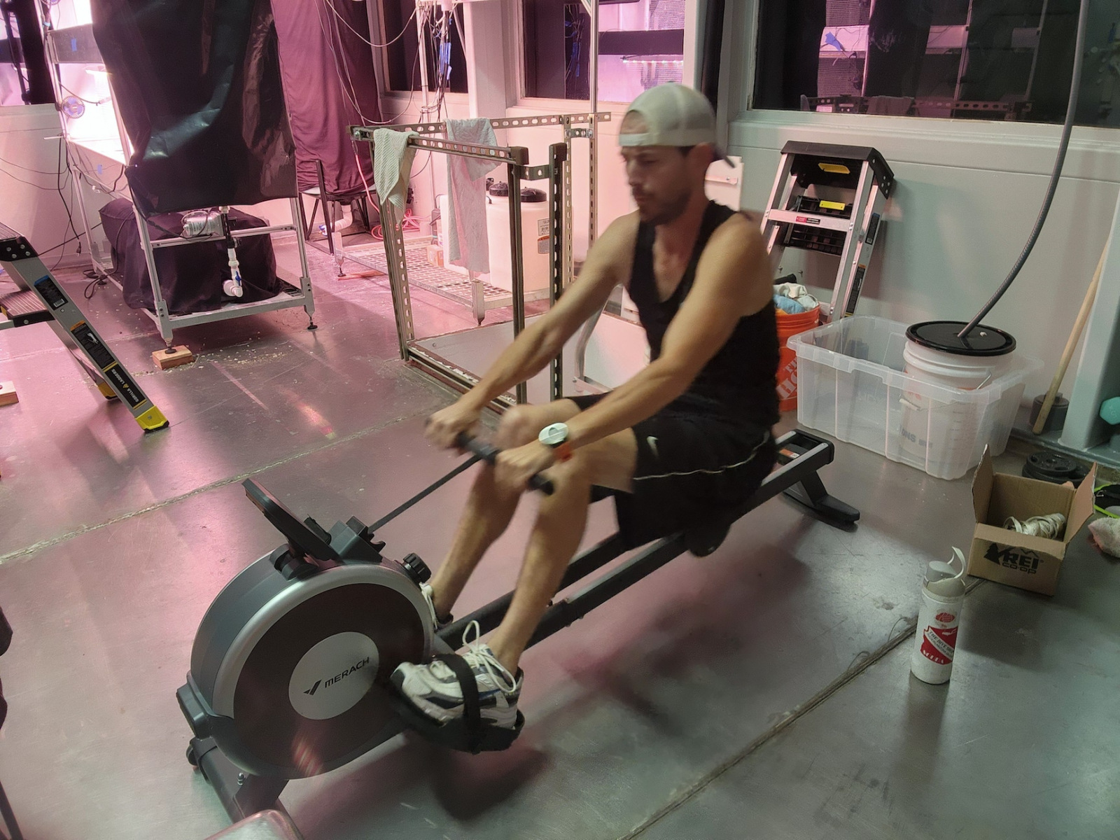 This was, to date, the longest crew stay in SAM, and the first in bioregeneration—the use of plants as a means to capture carbon dioxide (CO2) and generate oxygen. For the first week Matthias’ CO2 was partially offset by 144 dwarf pea plants grown in four hydroponics racks. At the start of the second week the peas were harvested, and his CO2 was allowed to rise for the following five days, unmitigated, for comparison. Water vapor suspended in the air (humidity) was captured, filtered, and returned to the nutrient storage tanks, one for each of the four hydroponics racks. And his uneaten food scraps were dehydrated then ground to an inert powder to be fed to mycelium, the root structure of edible mushrooms.