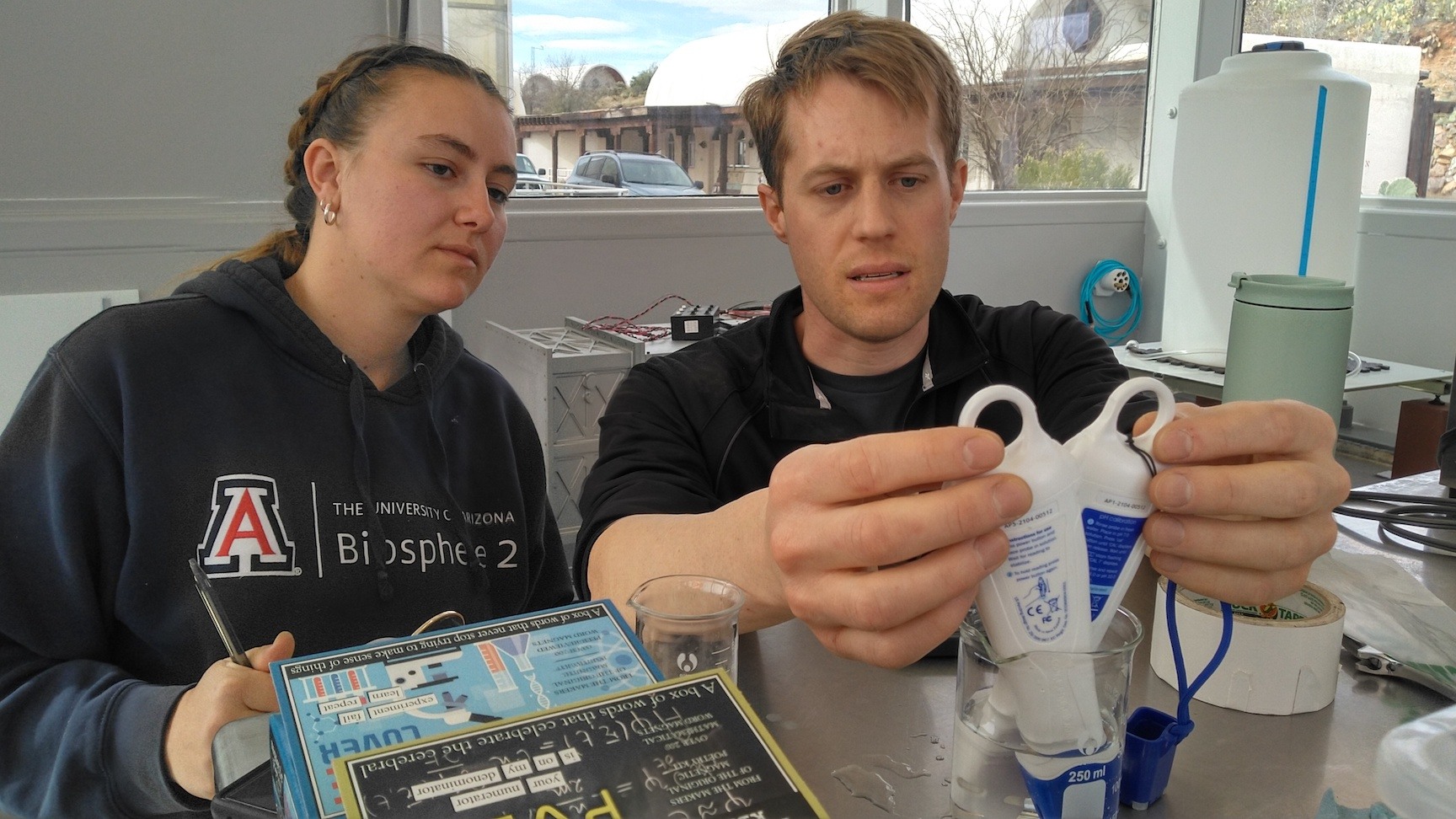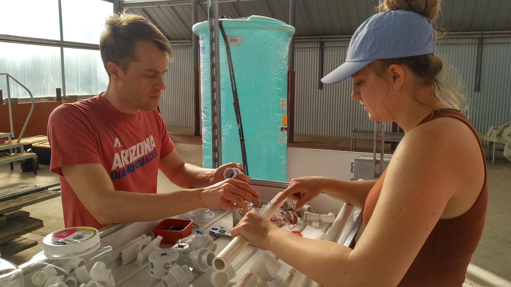 On Friday, December 16 the team met in the University of Arizona Center for Innovation (UACI) room at Biosphere 2 to develop a core philosophy around how visiting teams will be received and what they will take away from their experience at SAM. This effort was given foundation in an opening “safe space” visualization and discussion lead by Director of Research for SAM Kai Staats, followed by open discussion, ideation, and development of critical components of the SAM experience. Just after lunch the entire team participated in a pressure test of SAM, the first following the completion of the third pressure door by Nathan Schmit that very morning. Ezio Melotti, lead developer of SIMOC gave a demonstration of the latest version of SIMOC Live with real-time carbon dioxide, oxygen, temperature, relative humidity, and VOCs sensors, both Vernier and Adafruit products.