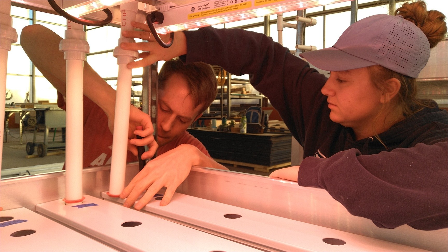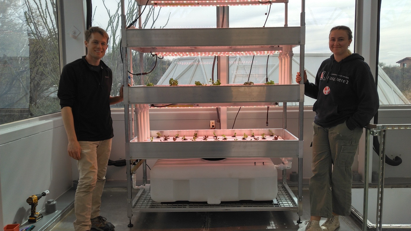 In total, the new SAM NFT hydroponics rack has space for 78 plants. Thanks to our Jason at Biosphere 2, our team was able to quickly prepare the system with 4 species of lettuce, kale, collared greens, and a variety of herbs for the Imagination 1 crew to use during their mission.