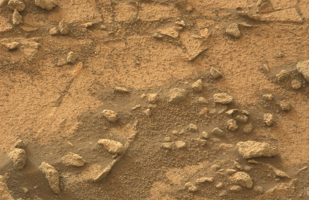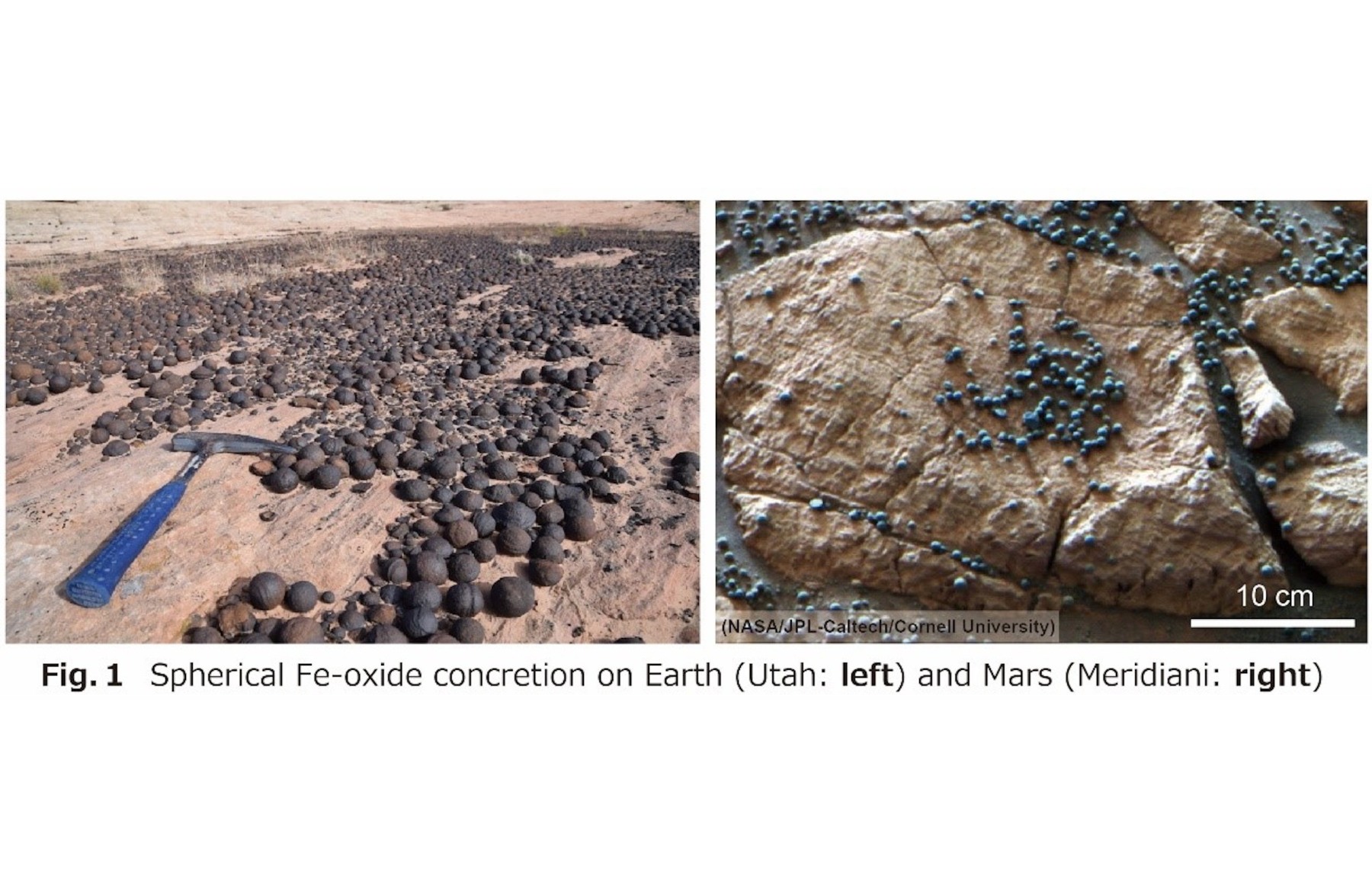- Example: Martian Blueberries (Hematite, an iron mineral). These are also found in Utah’s petrified sand dunes. They become superficial (meaning, separate from the stone in which they formed) as surrounding sandstone/mudstone erodes away. These were discovered by Opportunity the same day it landed.