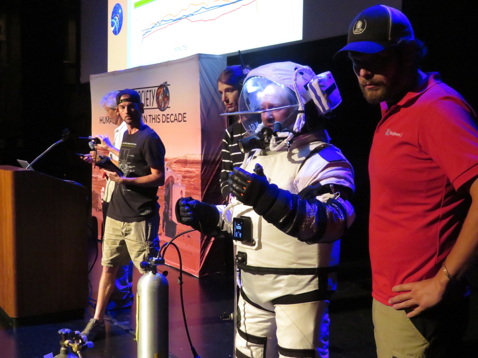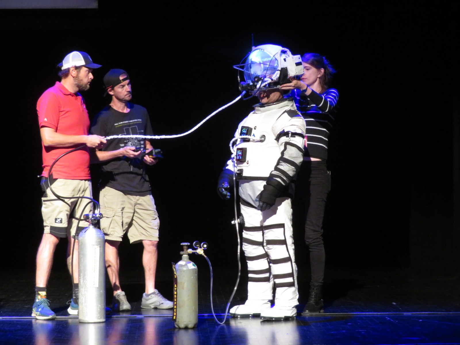 Members of both the SIMOC and SAM teams met for a three days summit to design and develop the SAM visiting team experience. On Thursday, December 15 co-founder of CHaSE, the Center for Human Space Exploration at the Biosphere 2 Trent Tresch lead team members through the use of pressure suits and a crash course in the history of human space travel.